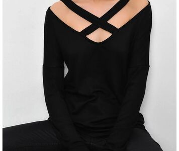 Kadın Siyah Çapraz Yaka Tunik B53 Kadın Siyah Çapraz Yaka Tunik B53 L