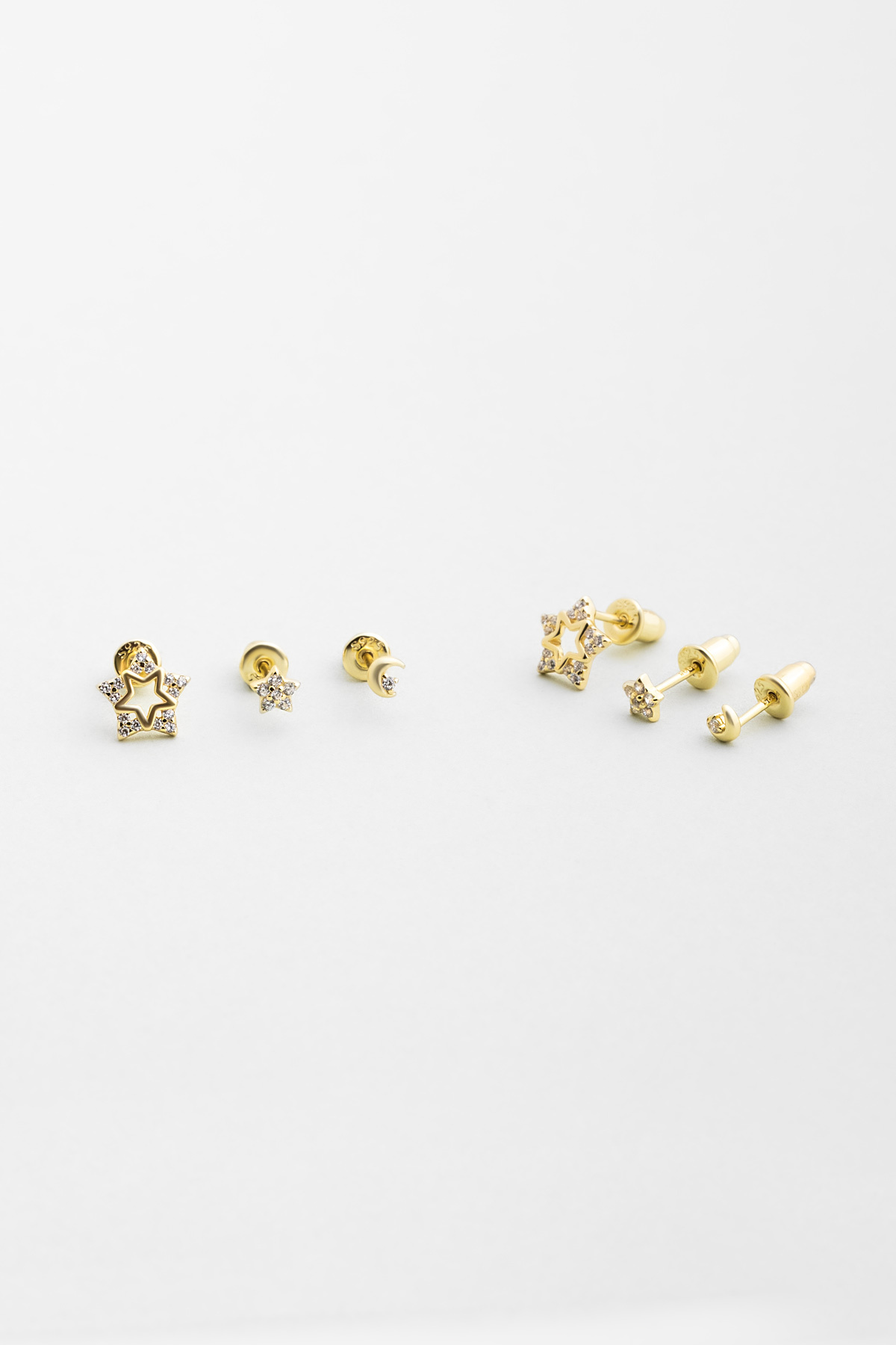 Satürn Yıldız Figürlü Taşlı 18 Ayar Rose Altın Kaplama Gümüş Üçlü Kombin Küpe Seti Satürn Yıldız Figürlü Taşlı 18 Ayar Rose Altın Kaplama Gümüş Üçlü Kombin Küpe Seti 5065180145 تک سایز