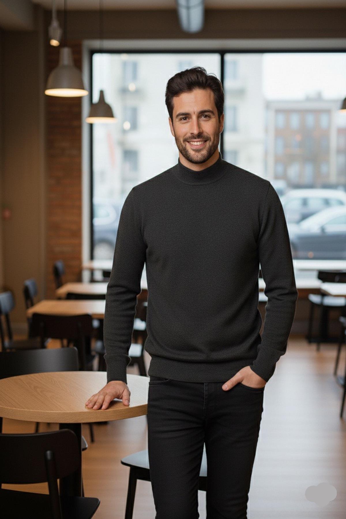 Erkek İnce Yün Triko Örgü Regular Kalıp Baba Yarım Balıkçı Yaka Boğazlı Kazak Bluz 5140 Erkek İnce Yün Triko Örgü Regular Kalıp Baba Yarım Balıkçı Yaka Boğazlı Kazak Bluz 5140 XL