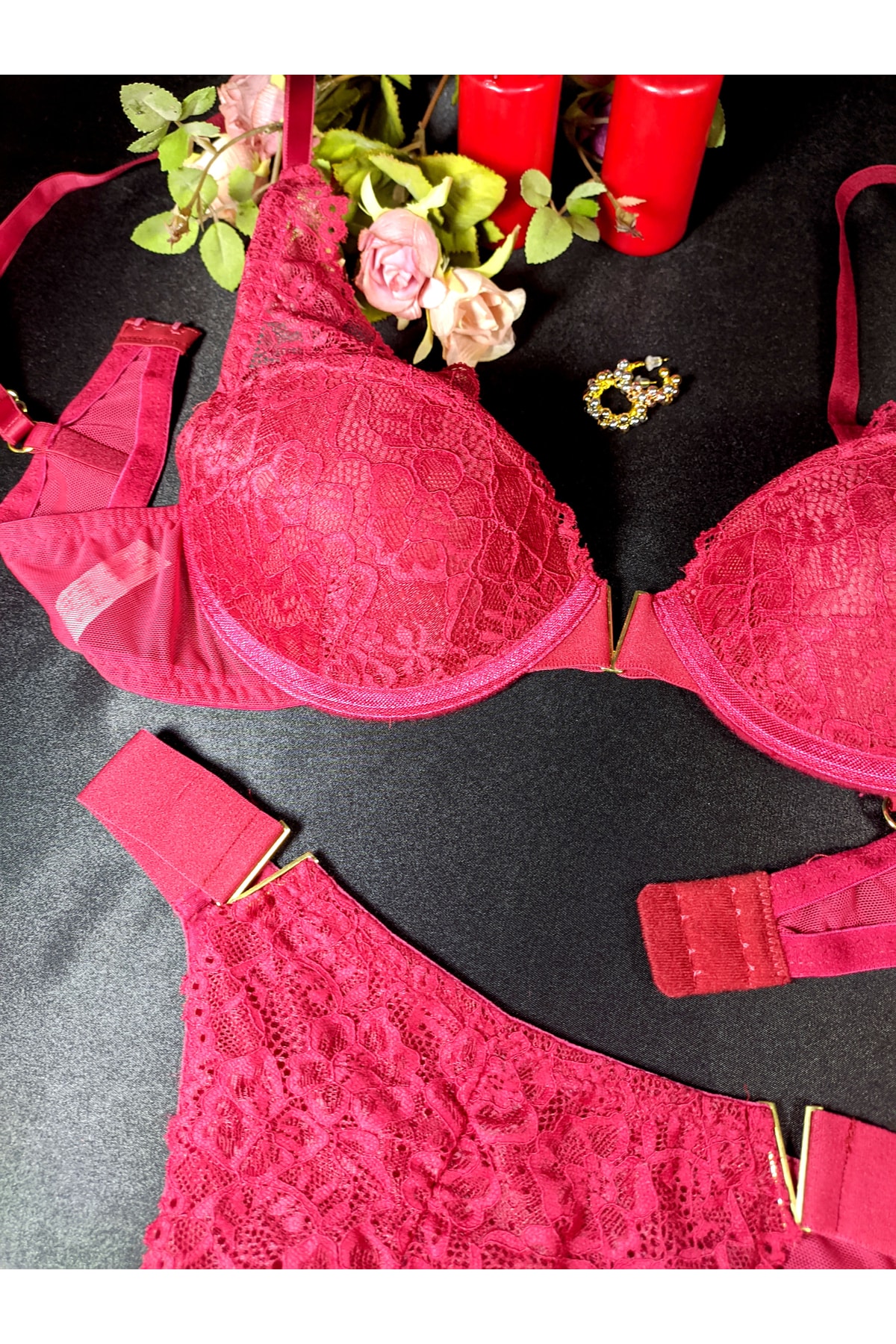 Dolgulu Önden Açmalı Sabit Askılı Dantelli Sütyen Takımı Dolgulu Önden Açmalı Sabit Askılı Dantelli Sütyen Takımı 1034 90