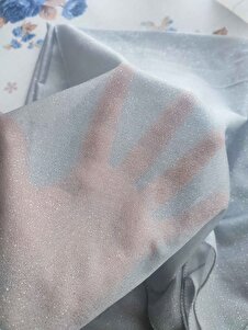 çok ince ve aşırı simliydi yıkadım yine de simi dökülmedi elimle iyice ovalayip ancak bu kadar çıkardım simlerini aşırı derecede sim kullanılmıştı bu dökülmüş hali.evin heryeri sim olmuştu. bide kolay kolay arınmıyor.cok ince iki katlayıp anca idare eder.bide enini geniş yapsalar 50 tl bile fazla buna ki ben 170 tl ye yakın verdim