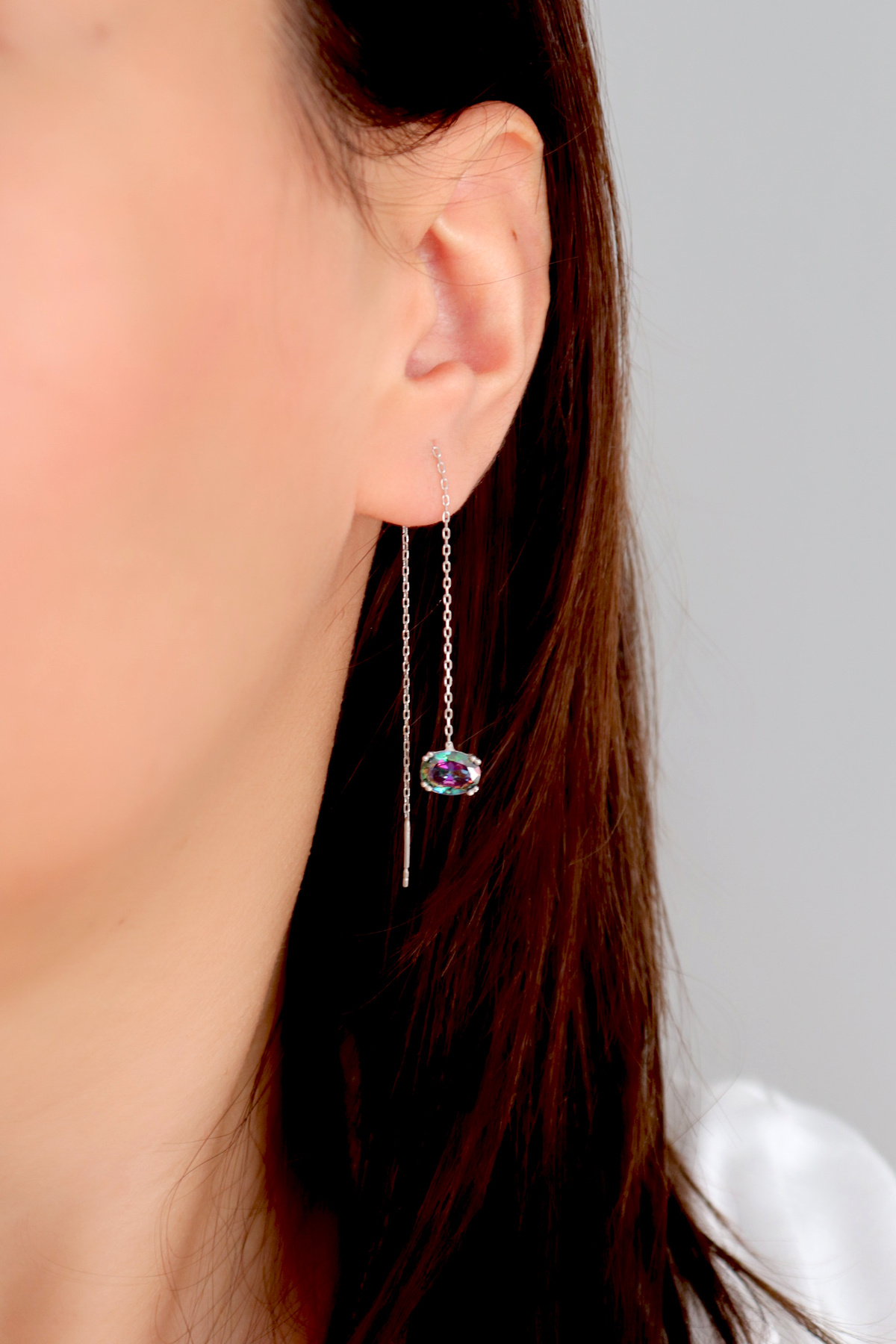 925 Ayar Gümüş Mistik Topaz Zincir Küpe 925 Ayar Gümüş Mistik Topaz Zincir Küpe kp0120 تک سایز