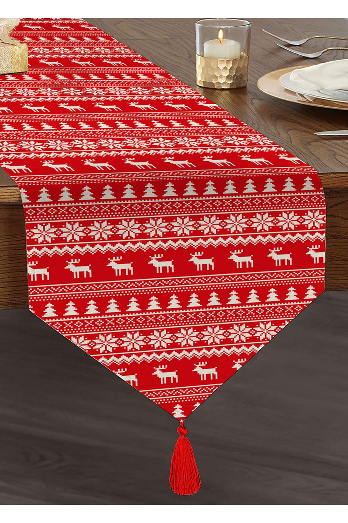 Kırmızı Beyaz Yılbaşı Geyikleri Dijital Baskılı Özel Tasarım Runner Kırmızı Beyaz Yılbaşı Geyikleri Dijital Baskılı Özel Tasarım Runner runner3046 تک سایز