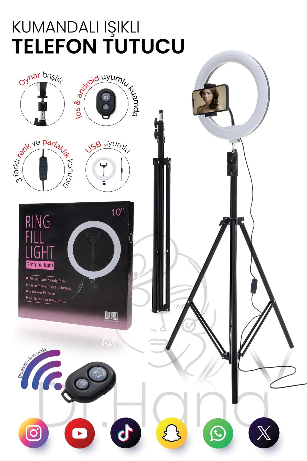 Bluetooth Kumandalı Tripod 2.1 Mt 360 Döner Başlıklı Telefon Tutucu Ring Light Stüdyo Lamba Ayağı Bluetooth Kumandalı Tripod 2.1 Mt 360 Döner Başlıklı Telefon Tutucu Ring Light Stüdyo Lamba Ayağı BT TRİPOD 32253 تک سایز