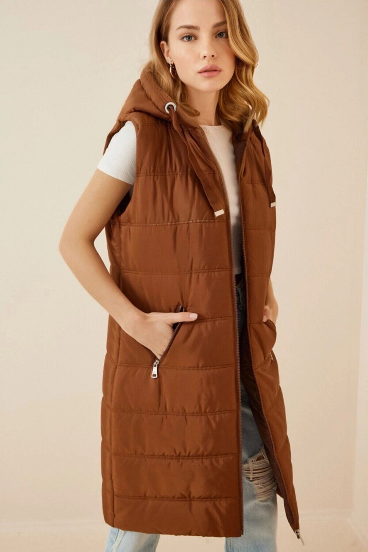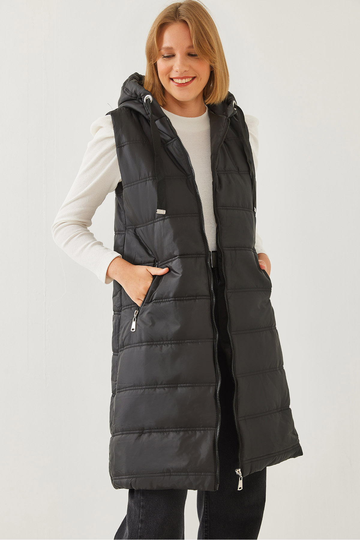 Kadın Siyah Uzun Yelek Kapüşon Kürklü Kadın Siyah Uzun Yelek Kapüşon Kürklü 5008 2XL
