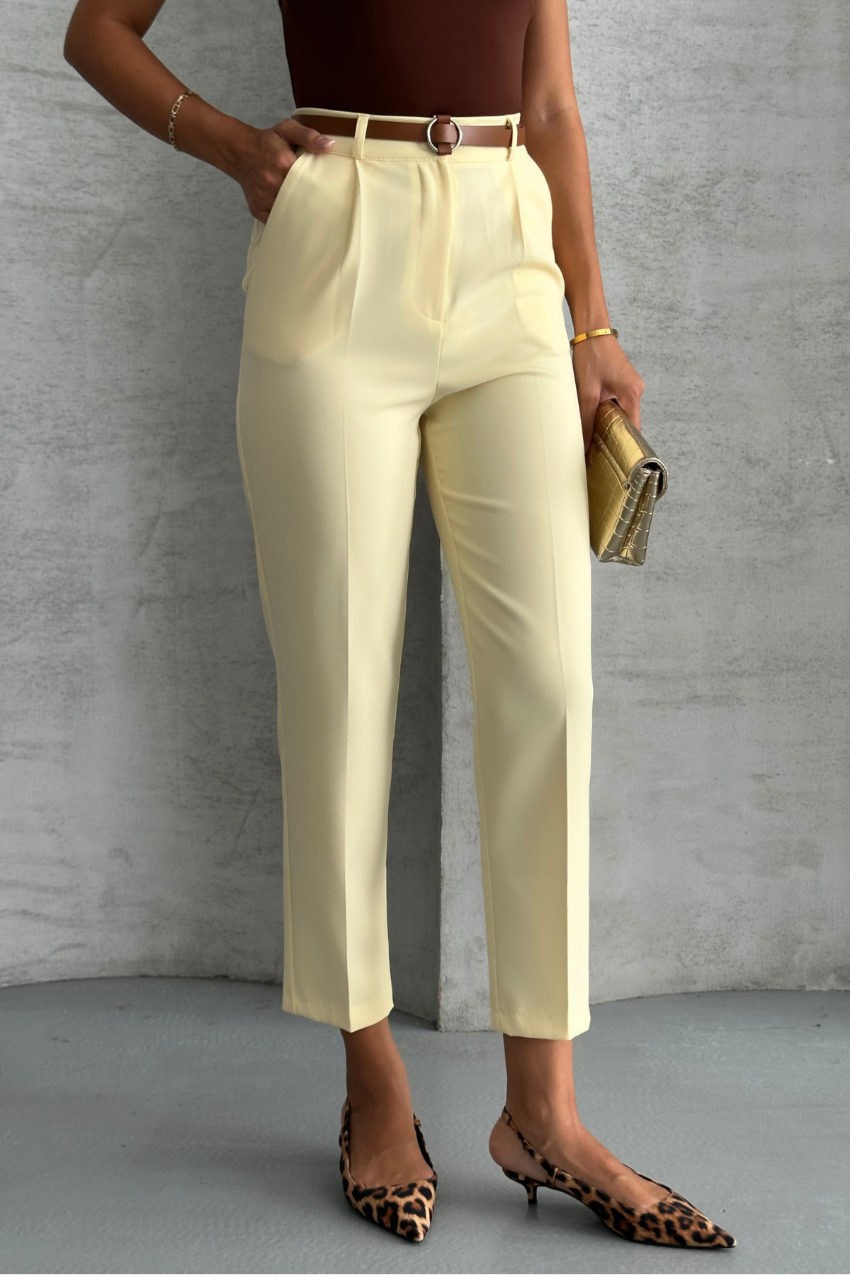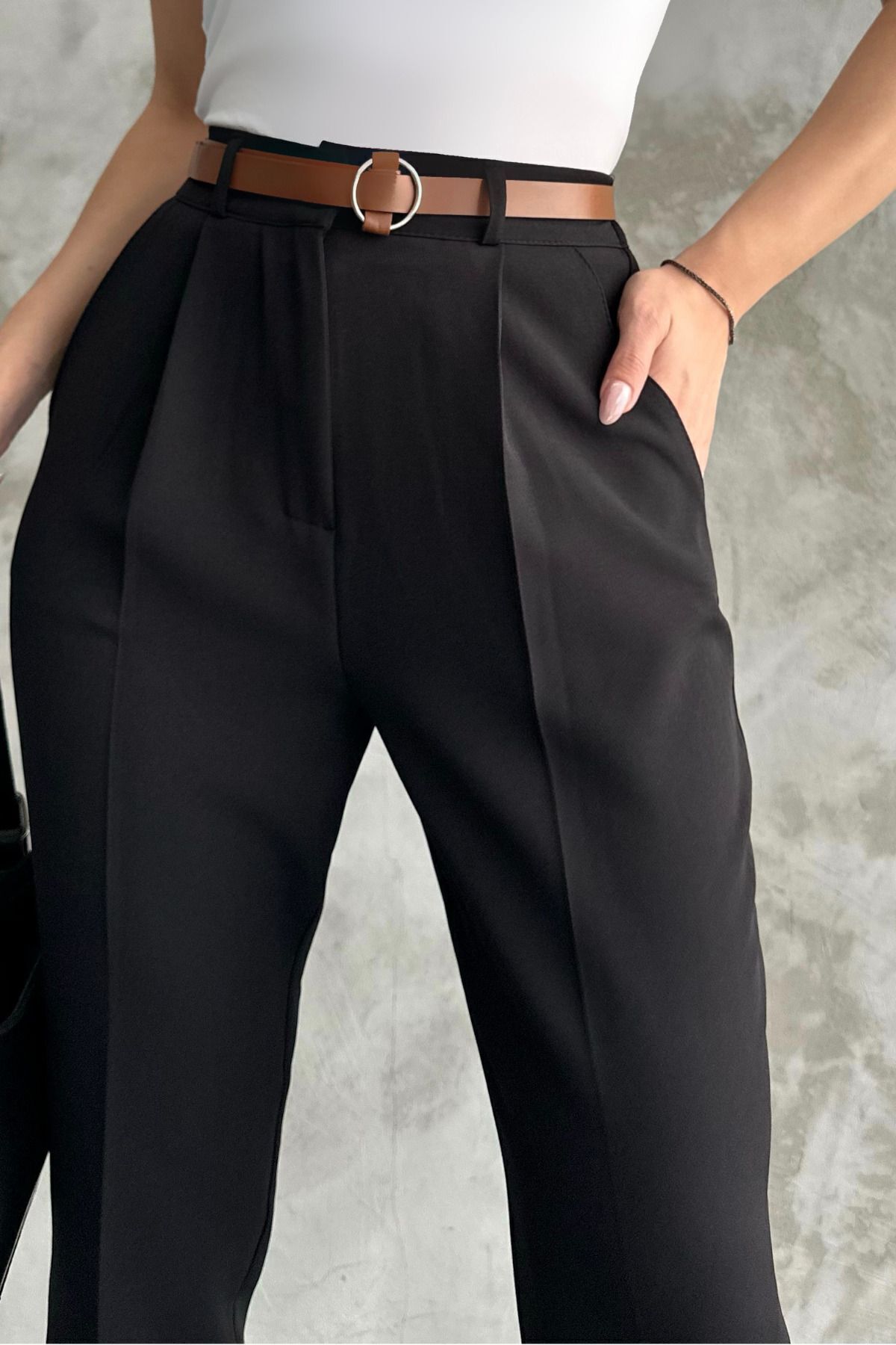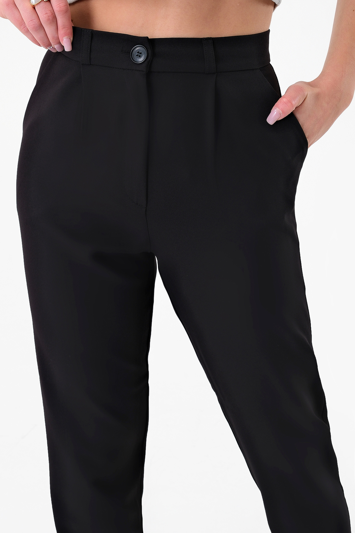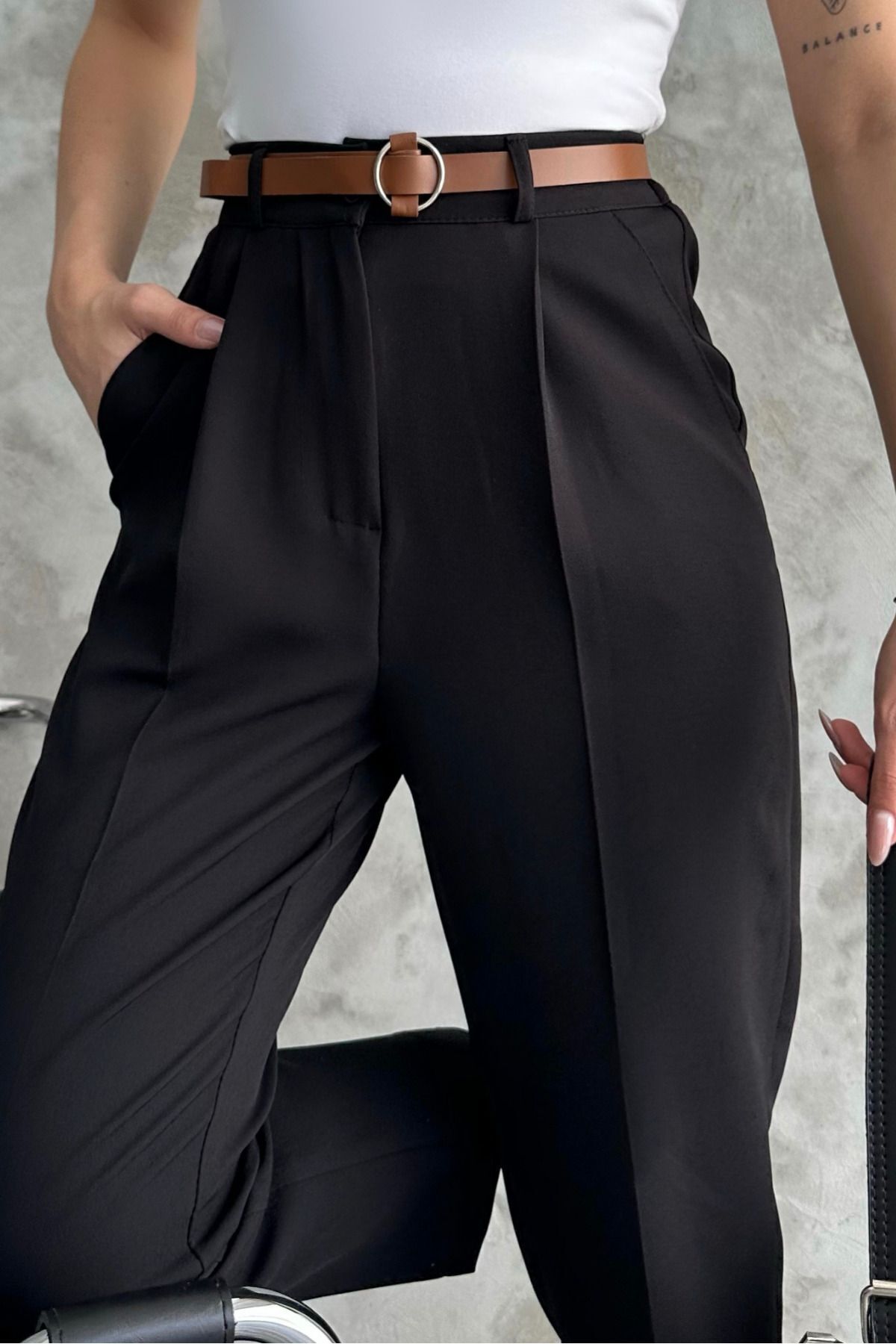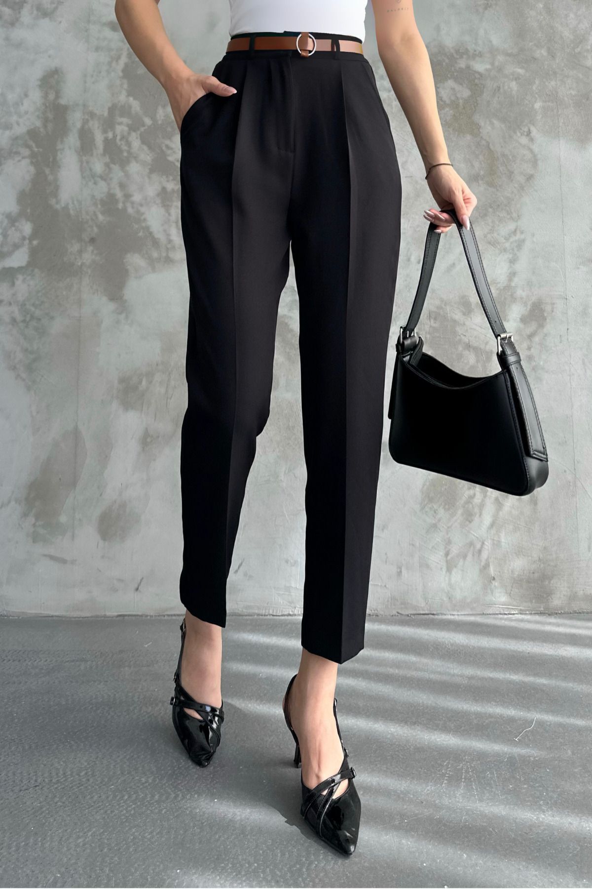 Kadın Dar Paça Pileli Kemerli Mevsimlik Kumaş Pantolon Siyah Kadın Dar Paça Pileli Kemerli Mevsimlik Kumaş Pantolon Siyah 525ATM 44