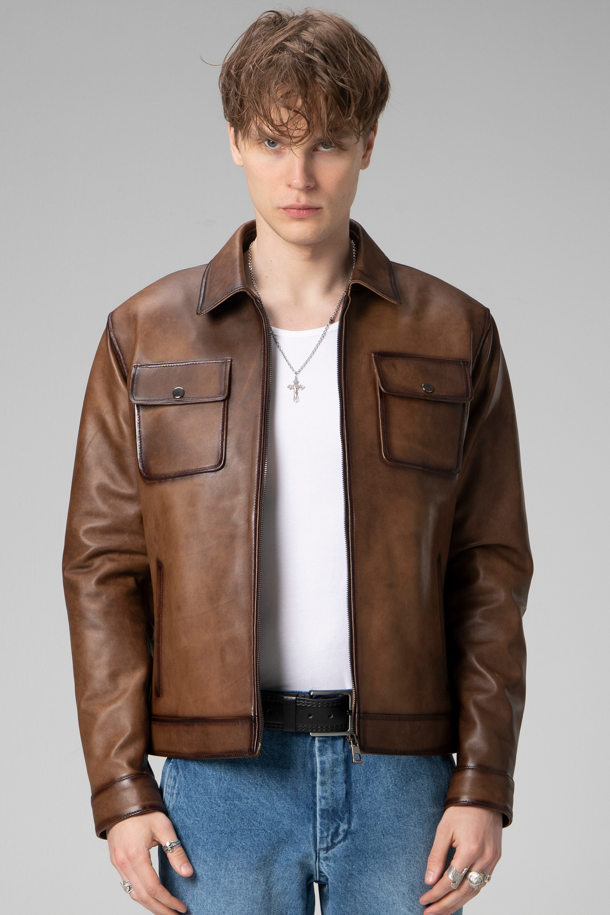 Wm218 Gerçek Deri Erkek Mont Camel Antik Wm218 Gerçek Deri Erkek Mont Camel Antik WM18_ZİG 4XL