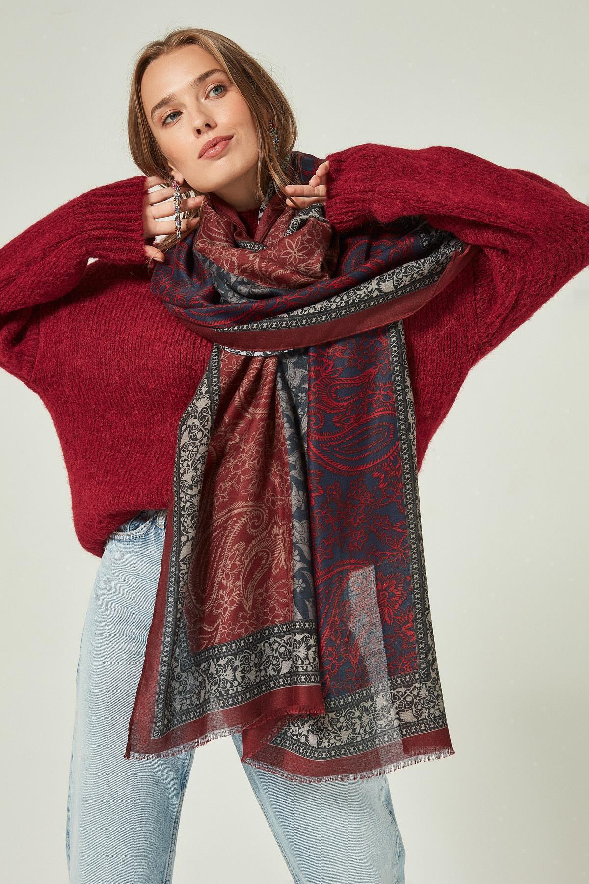 11188 Şal Desenli Bordo Şal 11188 Şal Desenli Bordo Şal تک سایز