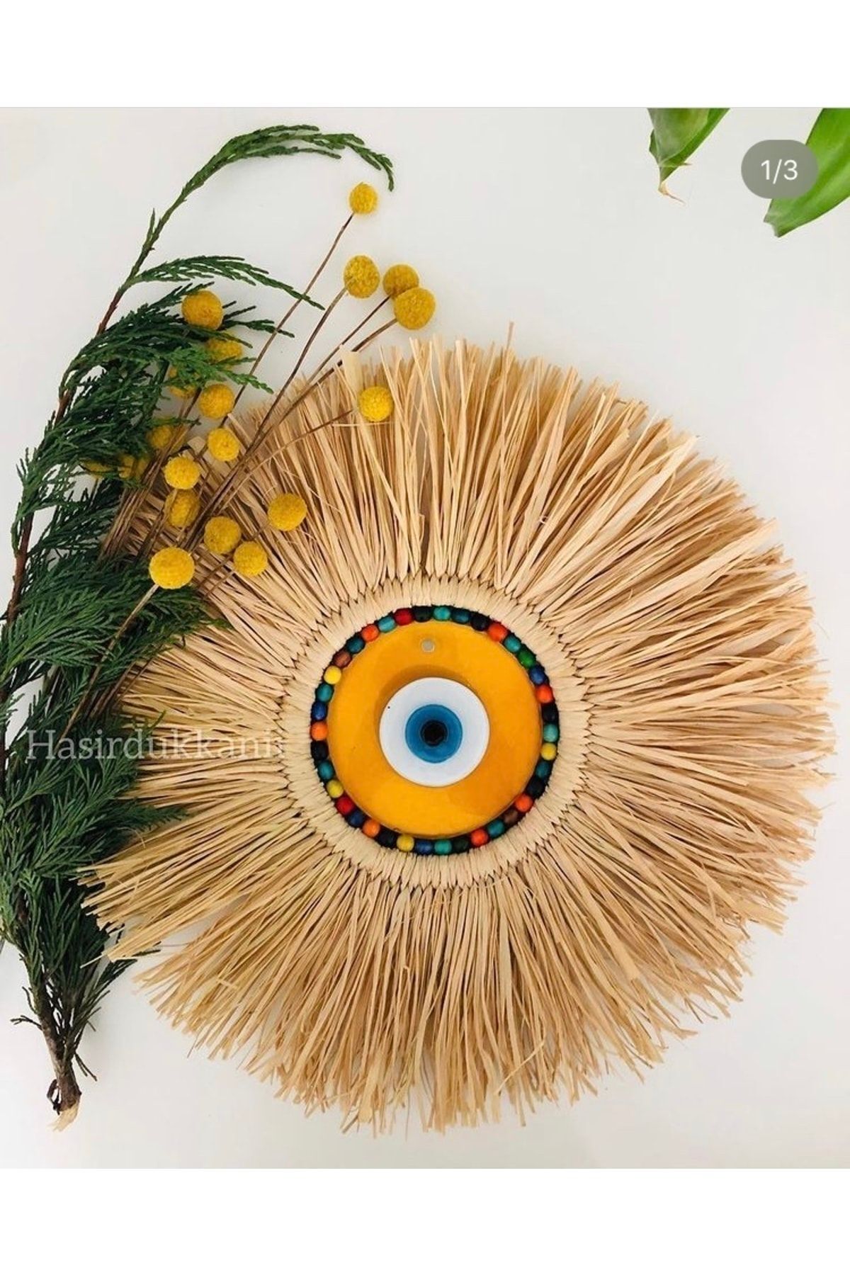 Doğal Muz Lifi El Yapımı Cam Nazar Boncuklu Duvar-ofıs-balkon-teras-restaurant-otel Dekorasyonu Doğal Muz Lifi El Yapımı Cam Nazar Boncuklu Duvar-ofıs-balkon-teras-restaurant-otel Dekorasyonu 205 50 x 110