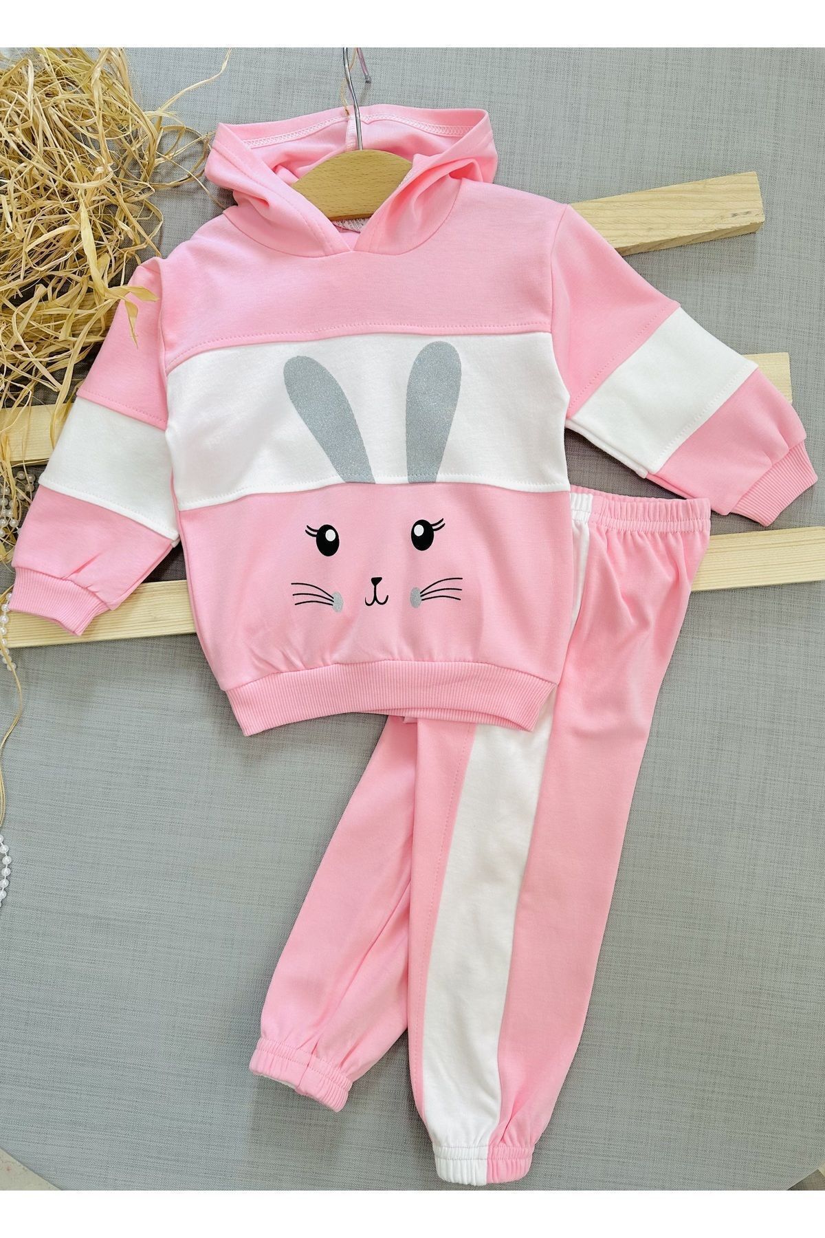 Kız Bebek Tavşan Baskılı Sweathirt Takımı / Alt Üst Takım Kız Bebek Tavşan Baskılı Sweathirt Takımı / Alt Üst Takım R2223 18-24 AY