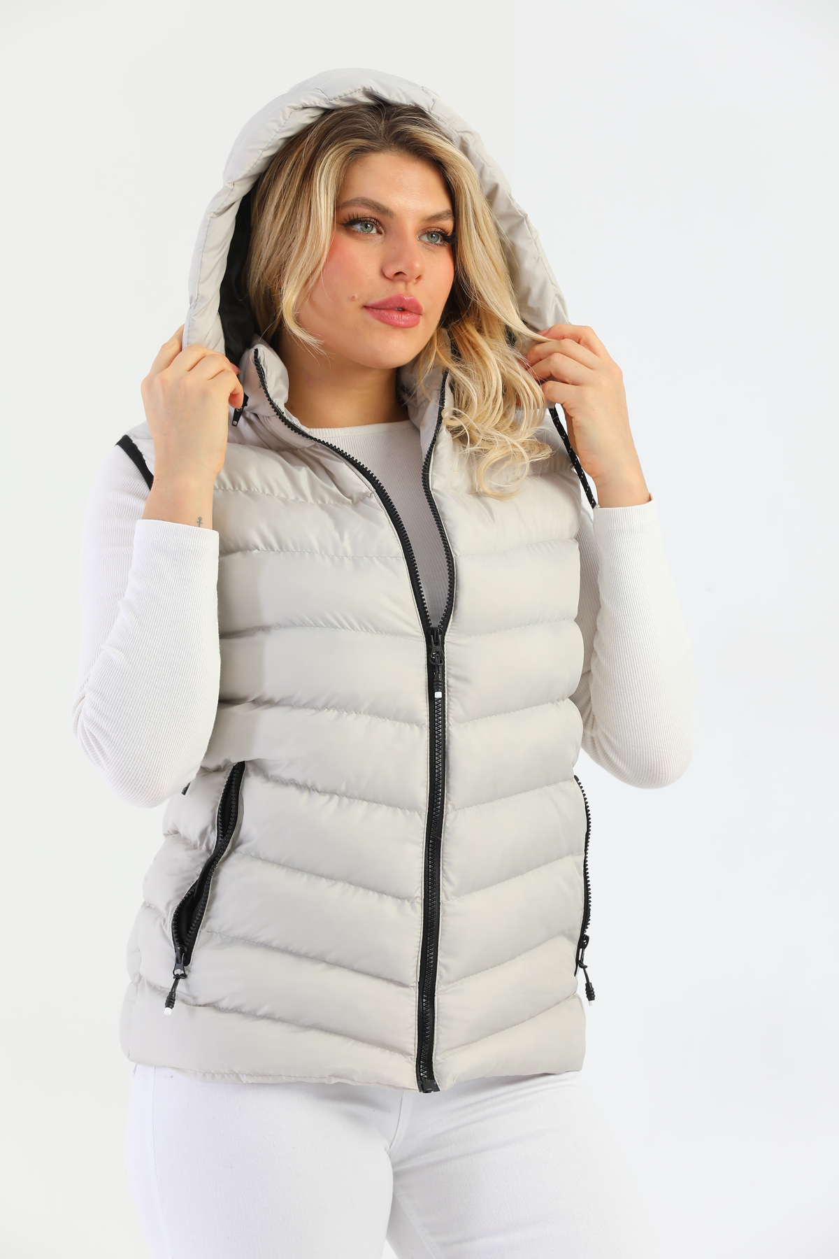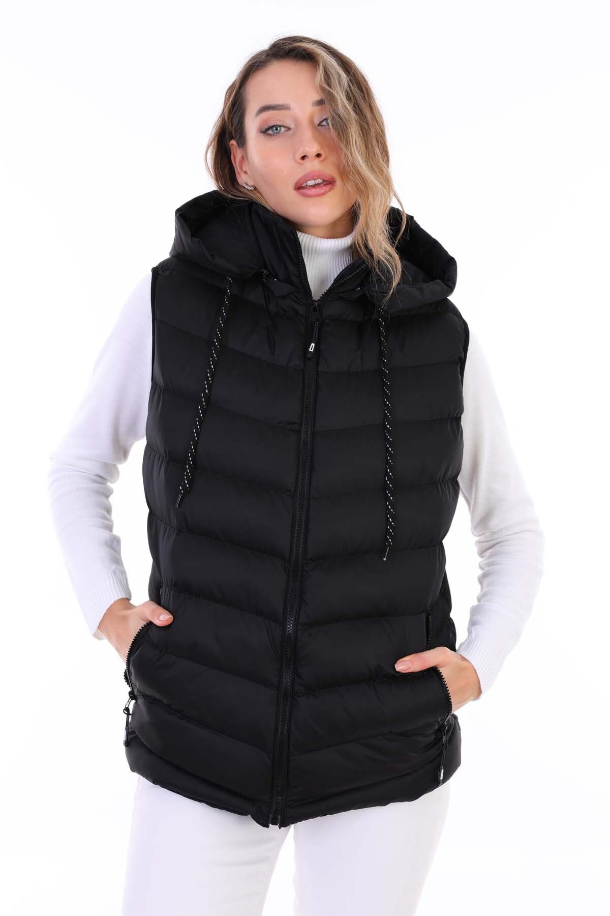 Kadın Silikon Dolgu Çıkartılabilen Fermuarlı Kapüşon 3 Cepli Şişme Yelek Kadın Silikon Dolgu Çıkartılabilen Fermuarlı Kapüşon 3 Cepli Şişme Yelek C05 2XL