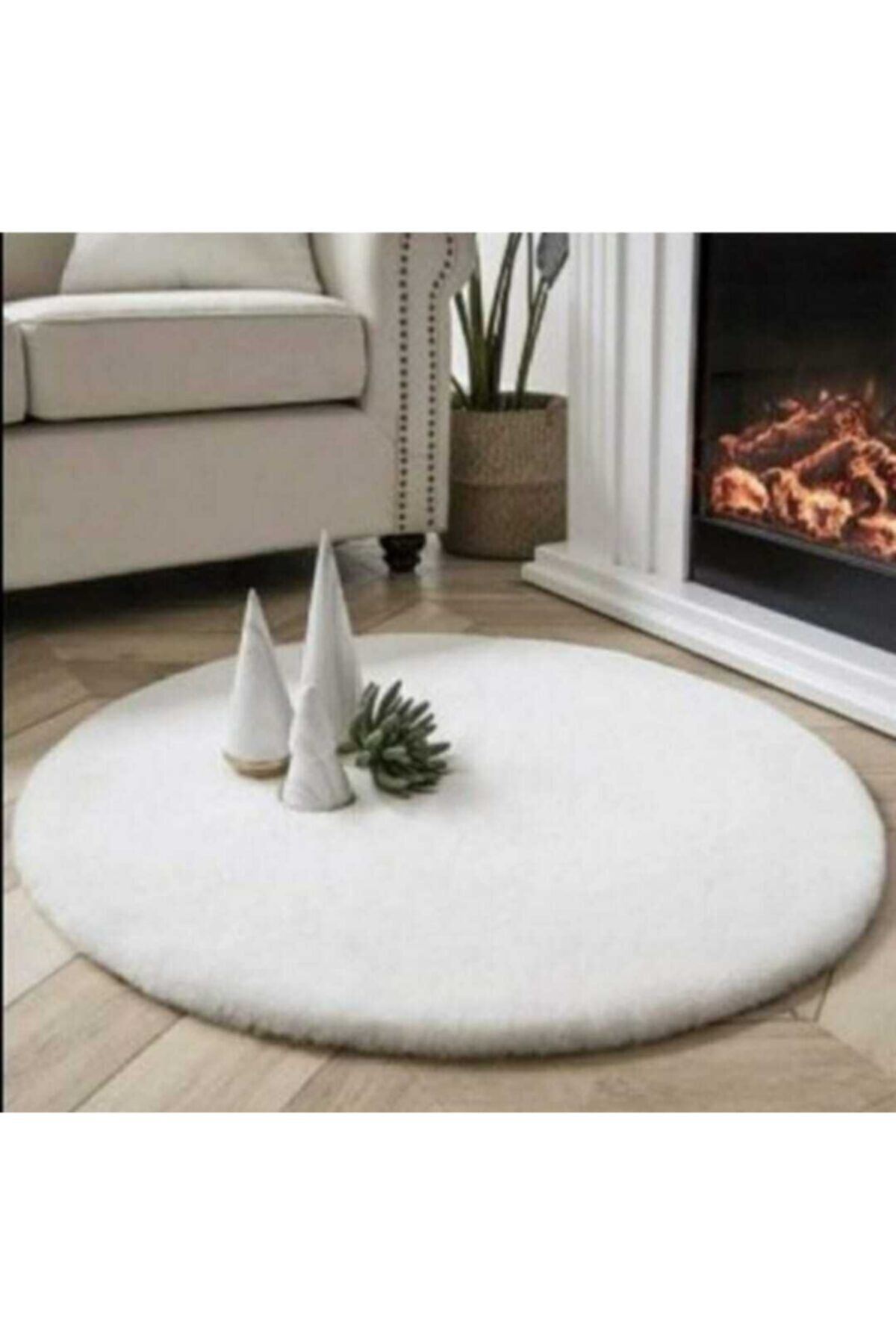 Yuvarlak Comfort Puffy Ponpon Saçaklı Peluş Halı Beyaz Mns Yuvarlak Comfort Puffy Ponpon Saçaklı Peluş Halı Beyaz Mns HN5001 200 x 200
