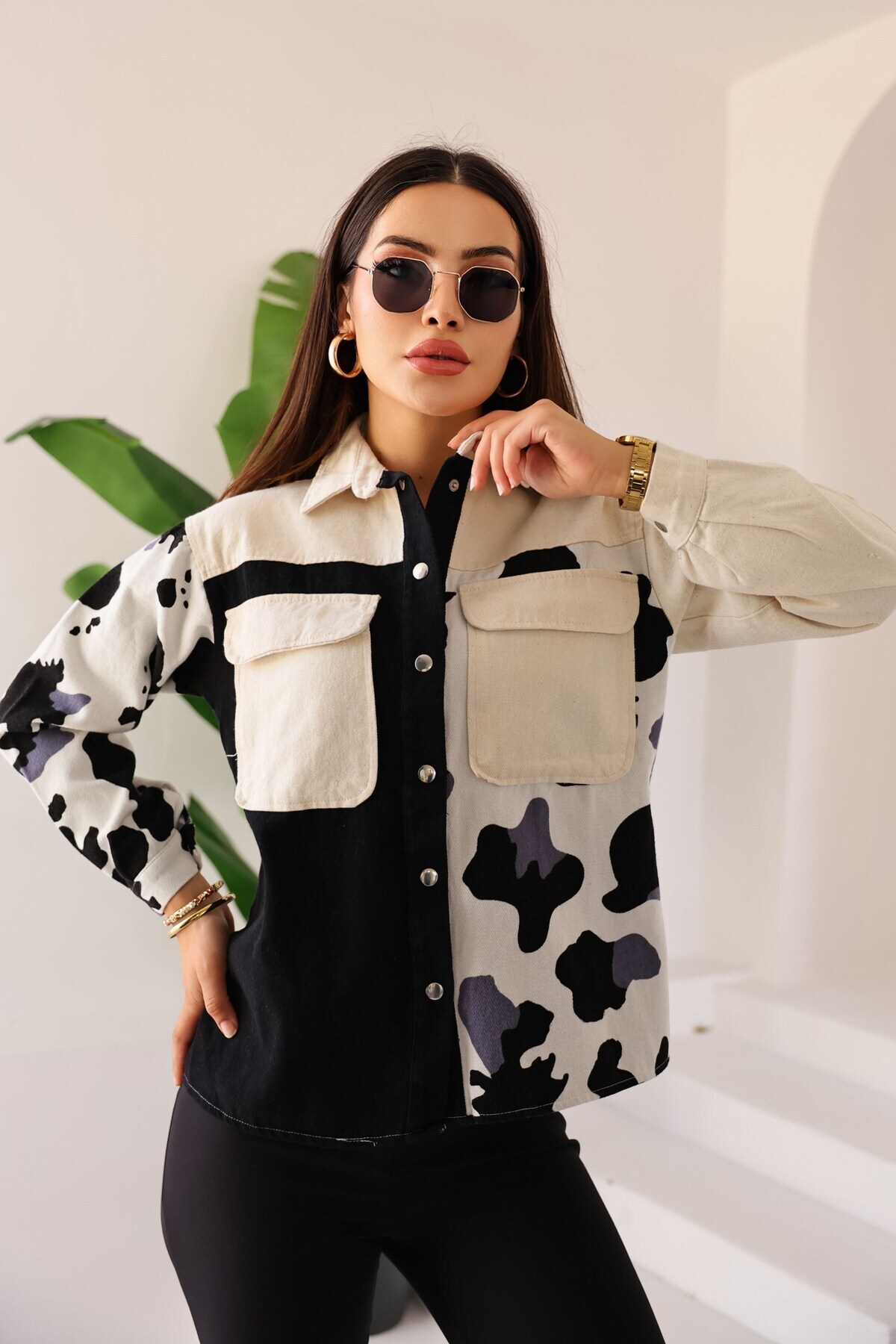 Benek Desenli Çift Cep Kapaklı Sarı Gabardin Gömlek Ceket Benek Desenli Çift Cep Kapaklı Sarı Gabardin Gömlek Ceket 32765 L