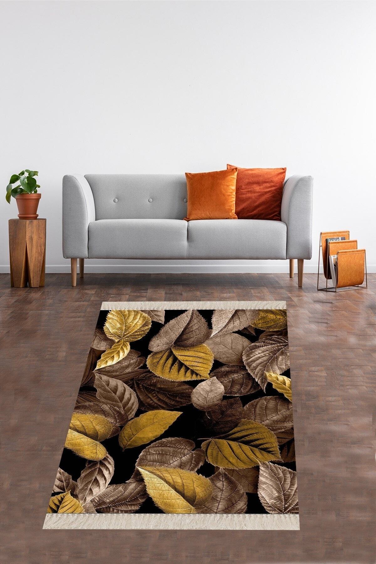 Gold Yaprak Desenli Dijital Baskı Yıkanabilir Kaymaz Taban Klasik Salon Halısı Gri Gold Yaprak Desenli Dijital Baskı Yıkanabilir Kaymaz Taban Klasik Salon Halısı Gri BFONTR4 160 x 230