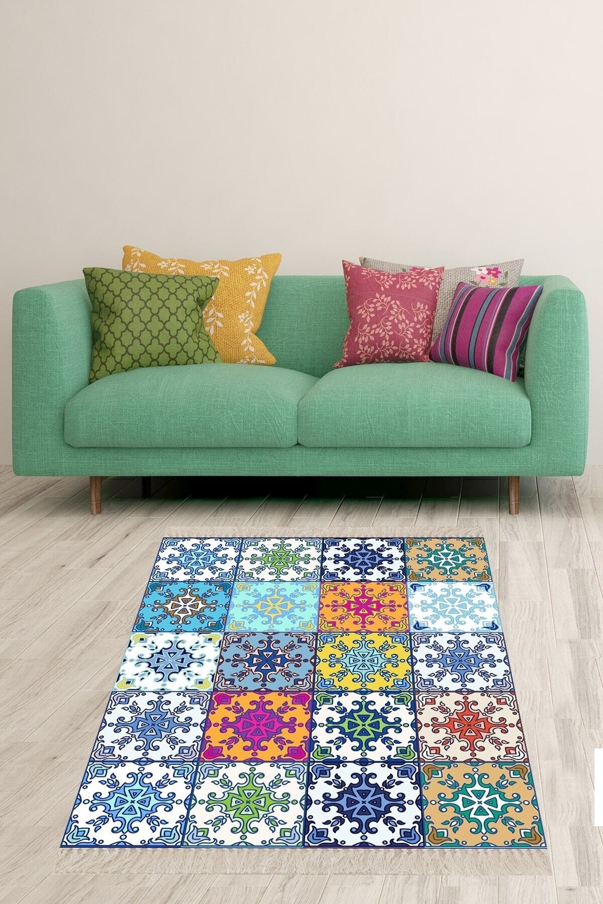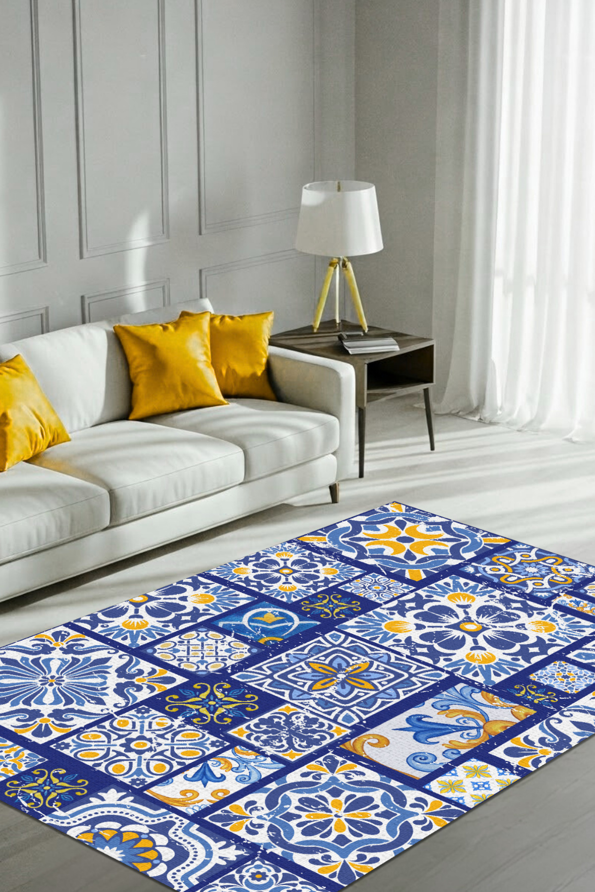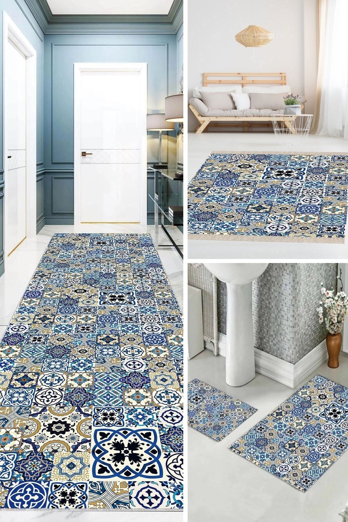 Çini Karo Desenli Halı Dijital Baskı Yıkanabilir Kaymaz Taban Leke Tutmaz Modern Salon Halısı Çini Karo Desenli Halı Dijital Baskı Yıkanabilir Kaymaz Taban Leke Tutmaz Modern Salon Halısı BFOMIX1 180 x 250