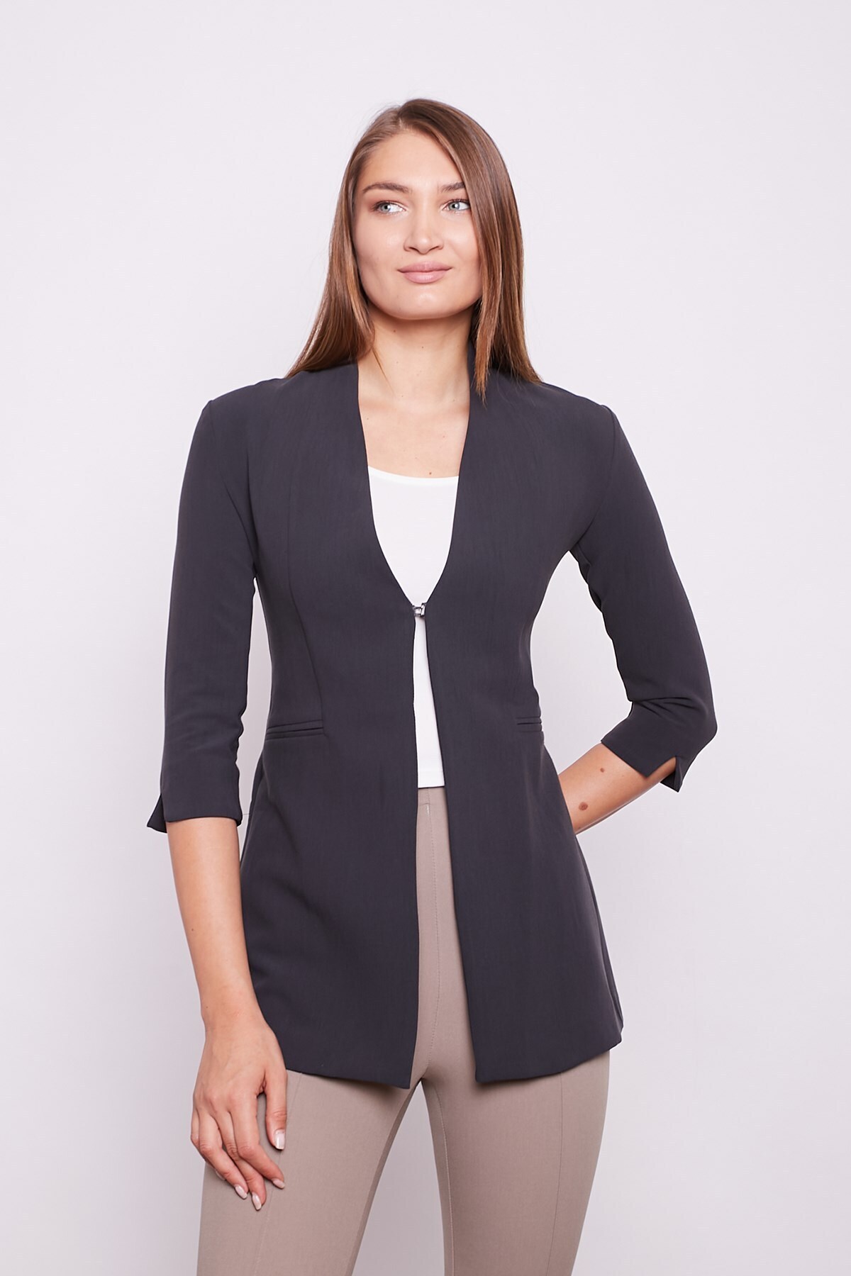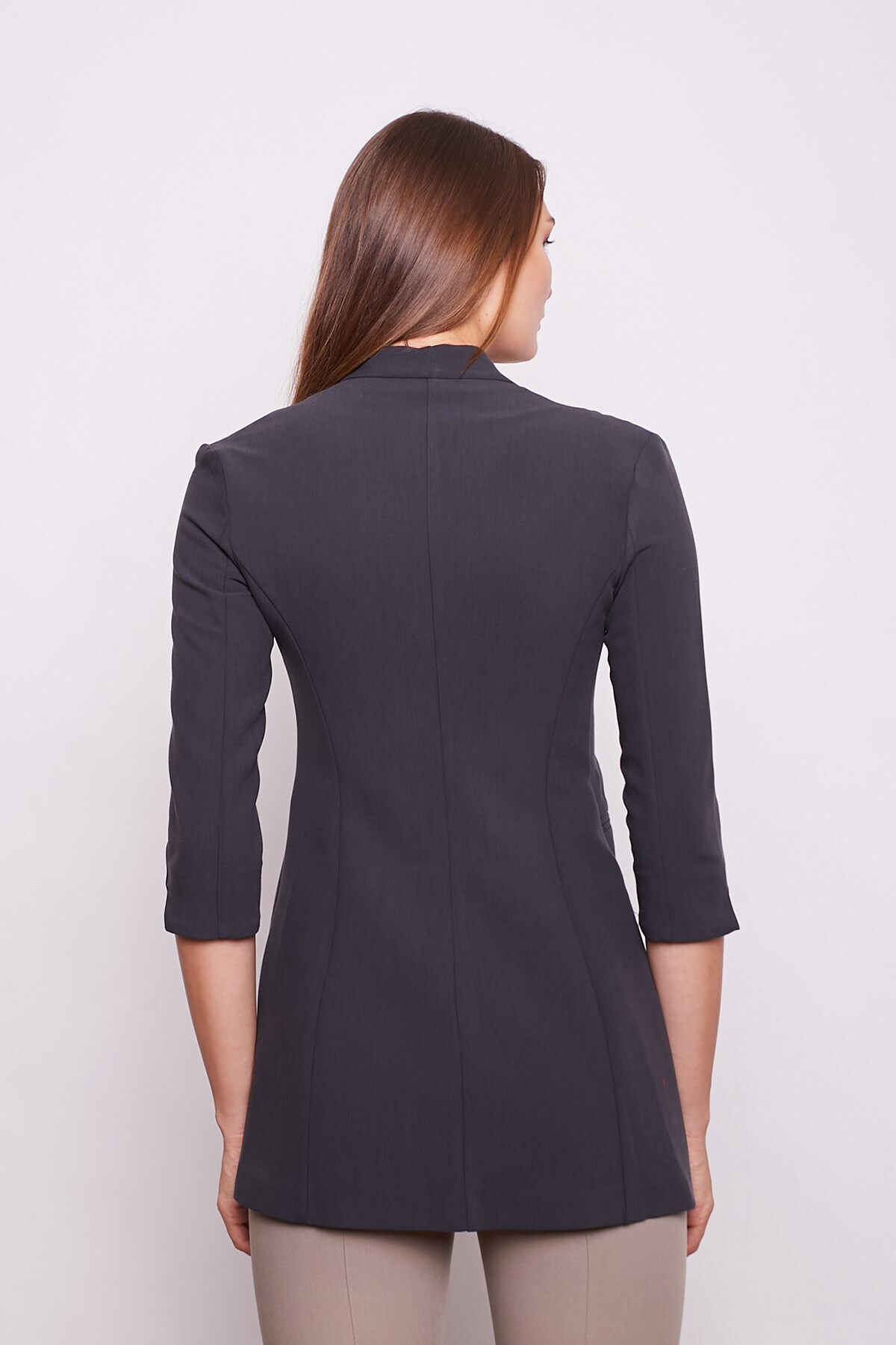 Hakim Yaka Flato Cepli Kolu Yırtmaçlı Uzun Blazer Pamuklu Likralı Kumaş Ceket -Antrasit Hakim Yaka Flato Cepli Kolu Yırtmaçlı Uzun Blazer Pamuklu Likralı Kumaş Ceket -Antrasit 2534 44
