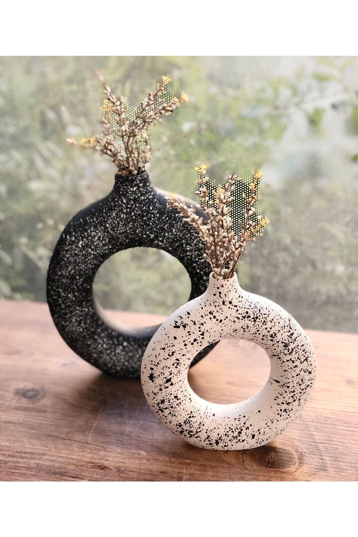 Beyaz & Siyah Granit Halka Vazo 2’li 19x17-15x14’cm Beyaz & Siyah Granit Halka Vazo 2’li 19x17-15x14’cm BSGHV20222 تک سایز