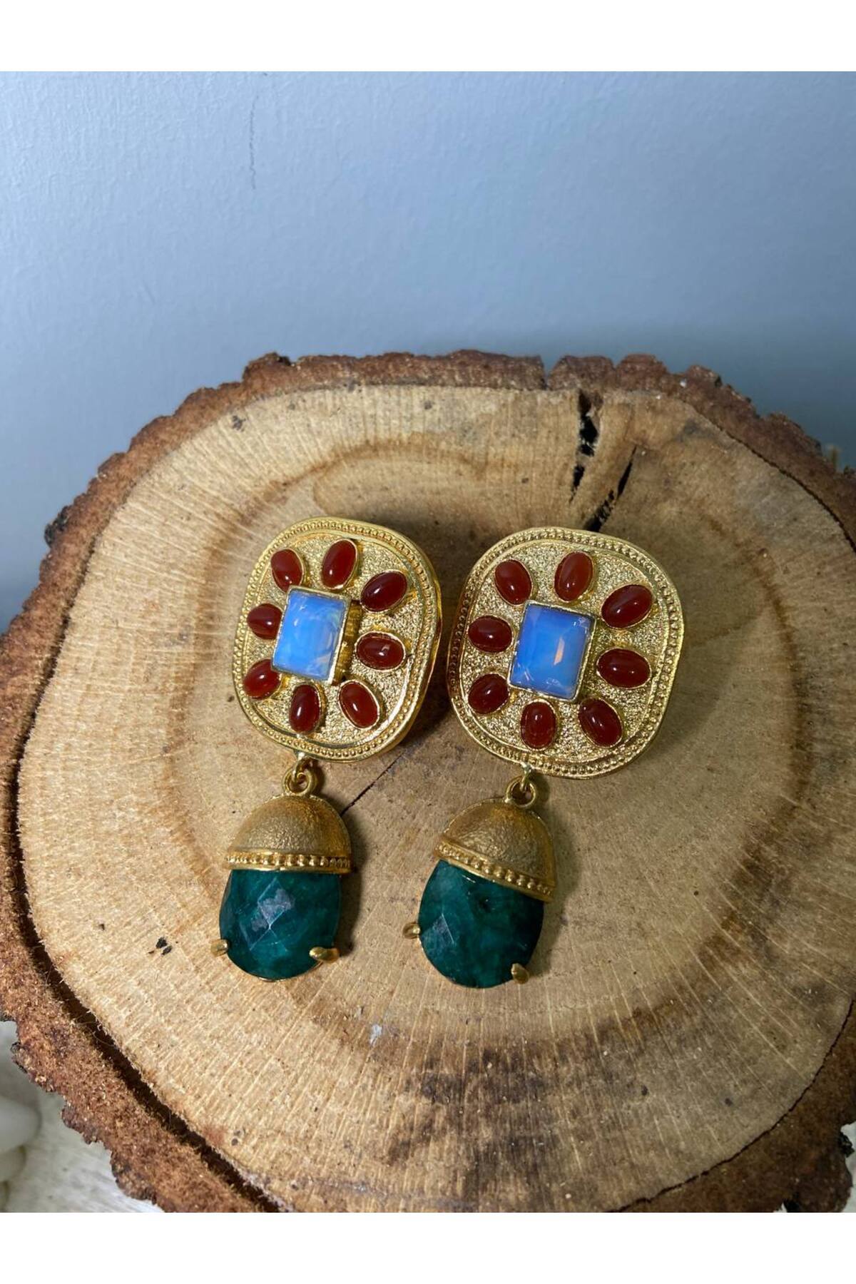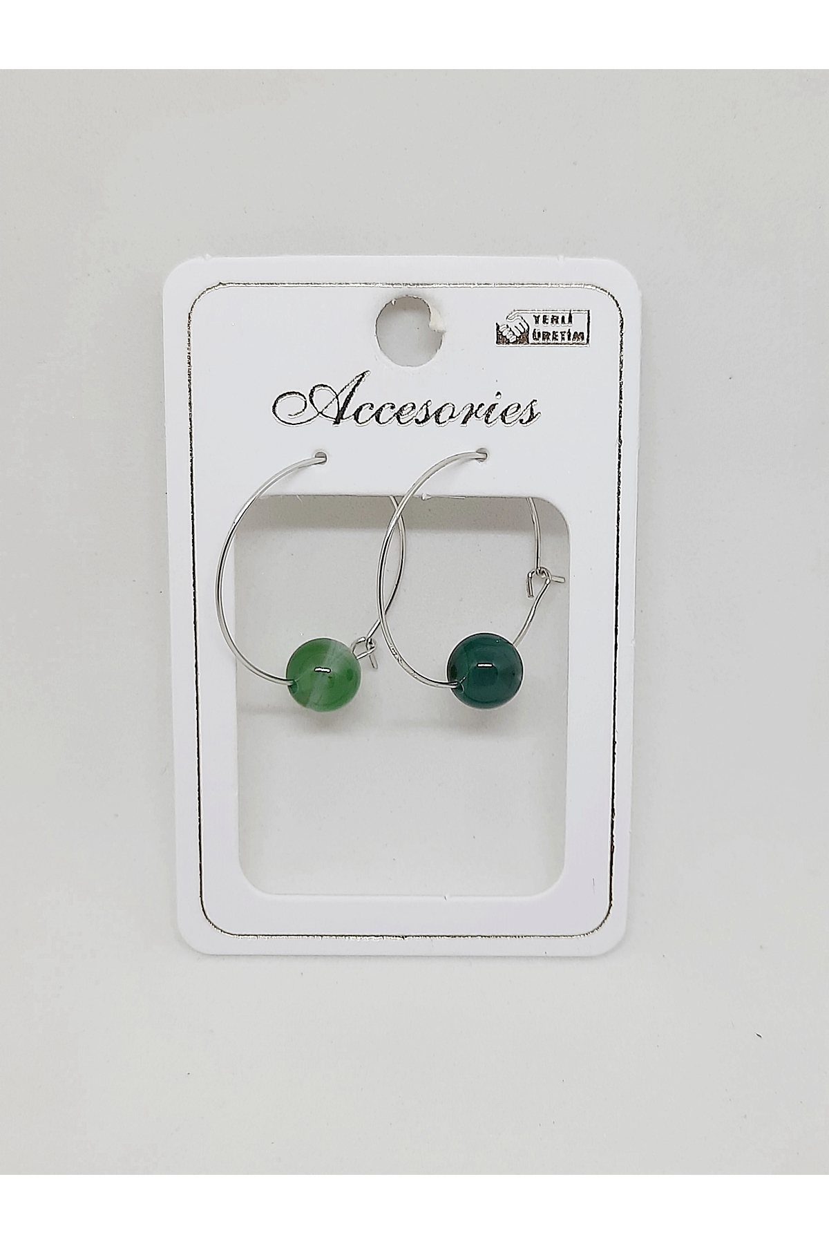 Sertifikalı Çizgili Yeşil Akik Taşlı Doğal Taş Küpe Sertifikalı Çizgili Yeşil Akik Taşlı Doğal Taş Küpe BHTUWZ36 تک سایز