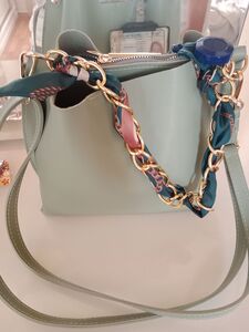 Kadın Tavus Mint Fularlı Zincir Aksesuarlı Yumuşak Deri 3 Bölmeli El Kol Ve Omuz Çantası Kadın Tavus Mint Fularlı Zincir Aksesuarlı Yumuşak Deri 3 Bölmeli El Kol Ve Omuz Çantası 2065-00 تک سایز