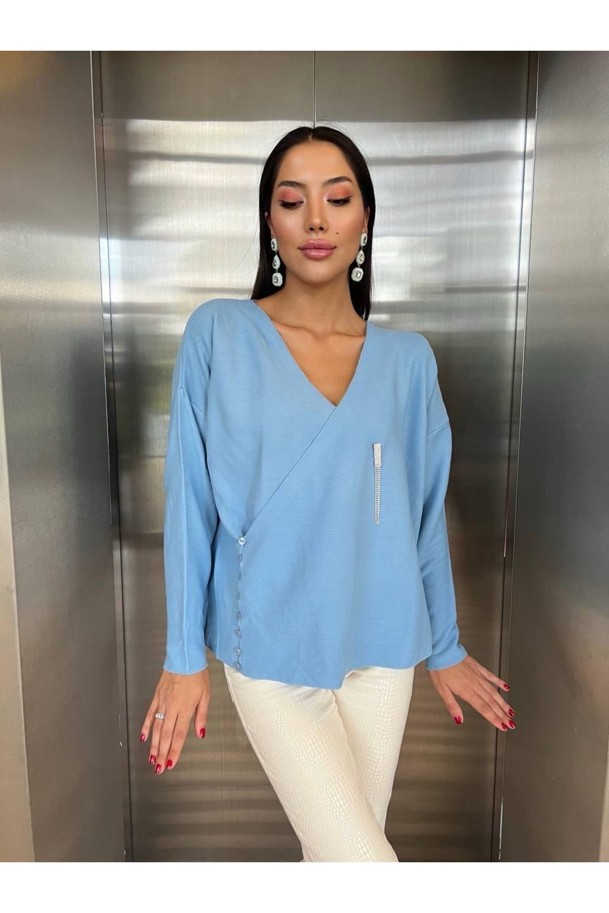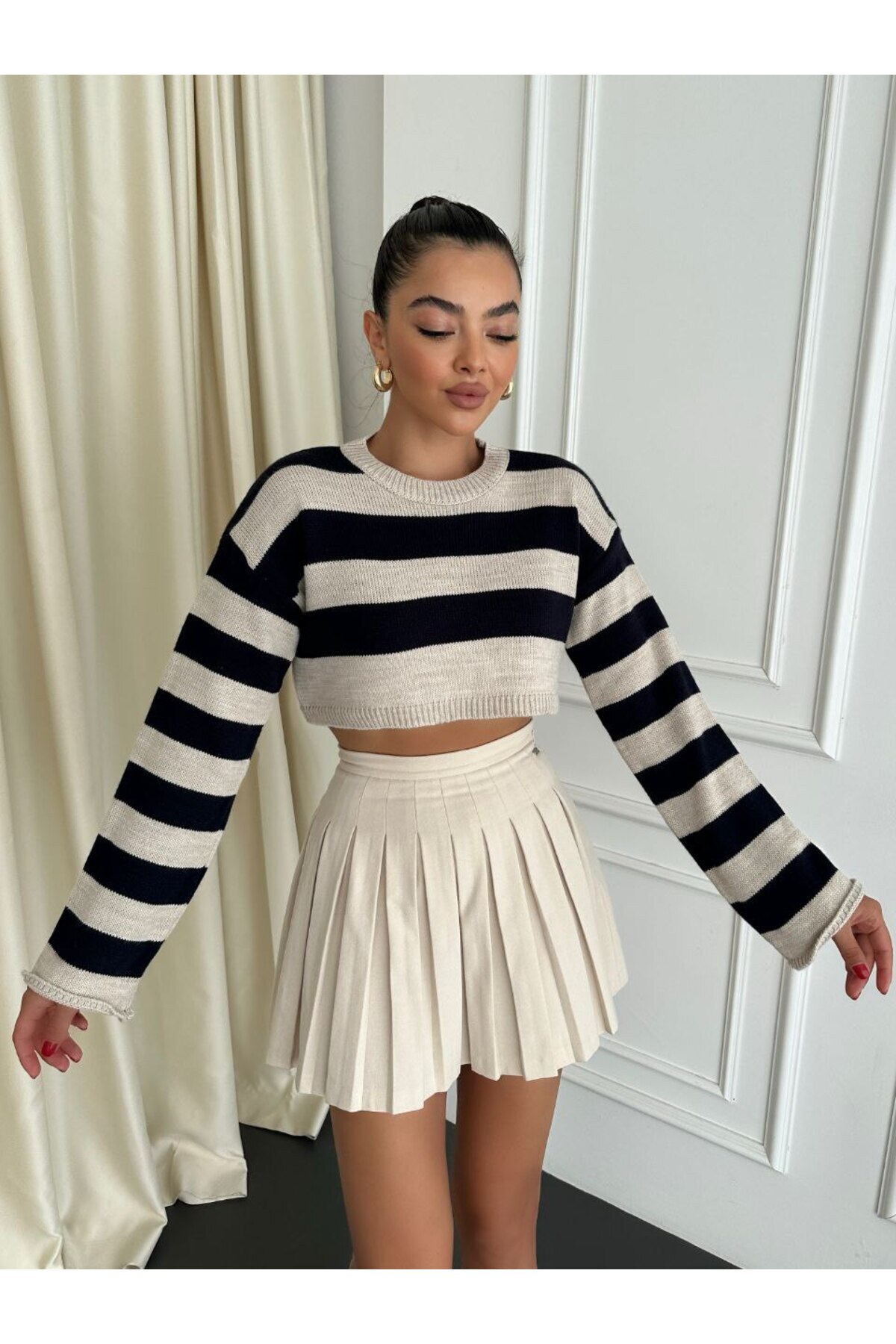 Kadın Selanik Örgü Crop Çizgili Kazak Kadın Selanik Örgü Crop Çizgili Kazak cropselanik Standart