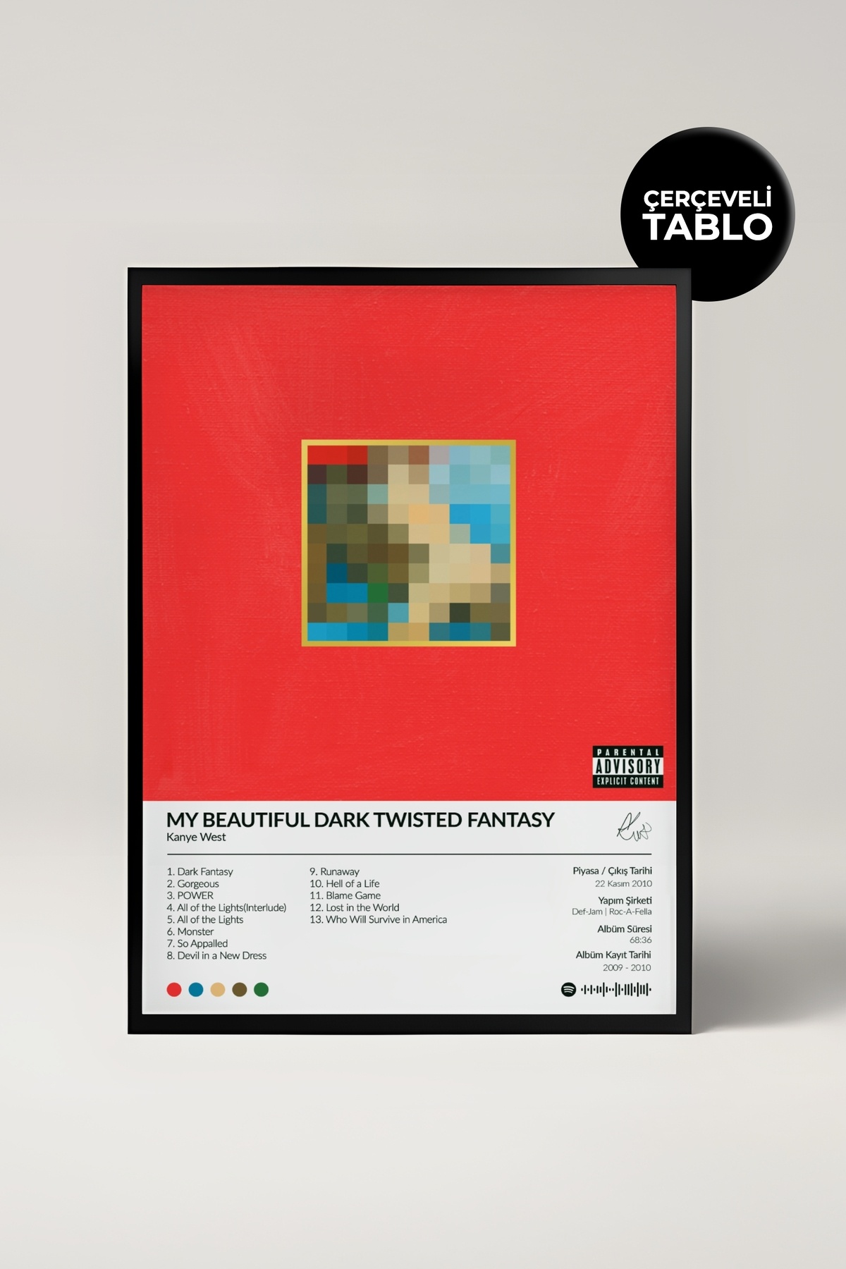 Kanye West Yeezus Albümü Çerçeve Albüm Tasarımlı Spotify Poster Kanye West Yeezus Albümü Çerçeve Albüm Tasarımlı Spotify Poster KWYZUS00001 30 x 42