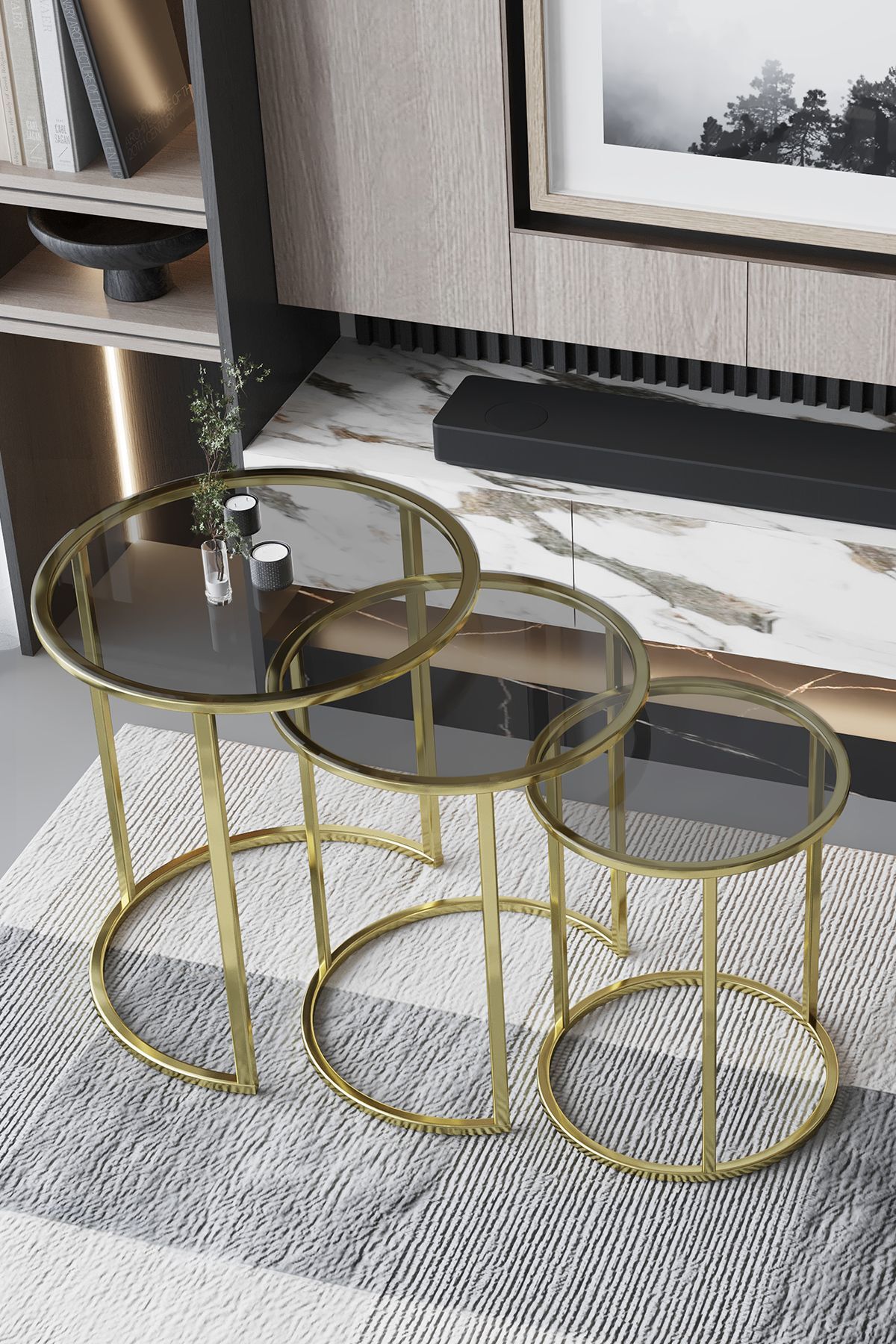 Voyage 3'lü Gold Metal Zigon Sehpa Beyaz Vg7-w Voyage 3'lü Gold Metal Zigon Sehpa Beyaz Vg7-w VG7-W تک سایز