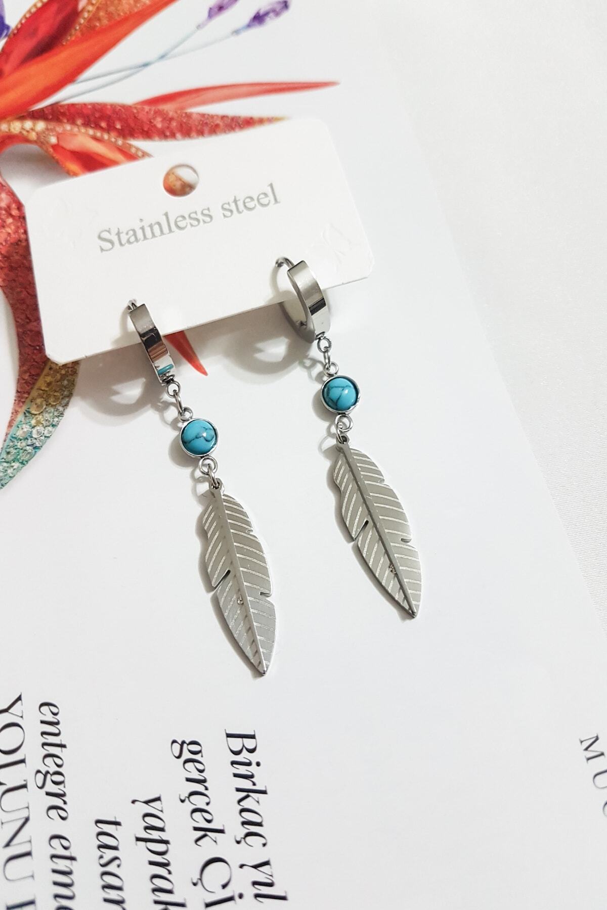 Çelik Firuze Taşlı Küpe Çelik Firuze Taşlı Küpe SVL106ÇFY 3 cm