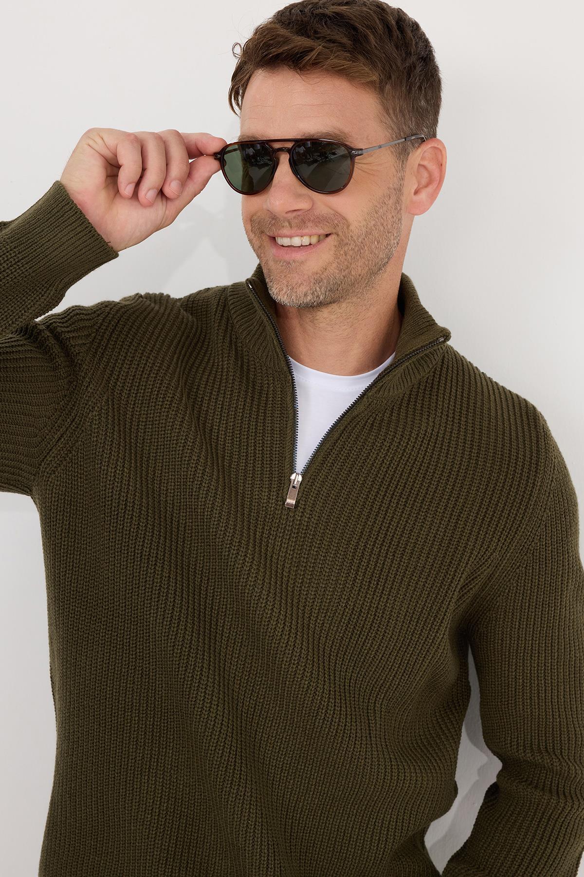 Erkek Haki Tüylenme Yapmayan Standart Fit Normal Kesim Yarım Balıkçı Yaka Triko Kazak Erkek Haki Tüylenme Yapmayan Standart Fit Normal Kesim Yarım Balıkçı Yaka Triko Kazak 4A4923100005 3XL