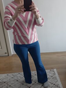 Kadın Pembe V Yaka Verev Çizgili Oversize Triko Kazak ALC-X9151 Kadın Pembe V Yaka Verev Çizgili Oversize Triko Kazak ALC-X9151 Standart
