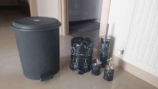 Siyah Mermer 4 lü Set Pedallı Çöp Kovası wc Klozet Fırça Sabunluk Diş Fırçalık Seti Siyah Mermer 4 lü Set Pedallı Çöp Kovası wc Klozet Fırça Sabunluk Diş Fırçalık Seti VE6534003-7 تک سایز