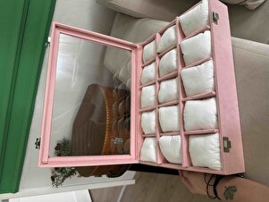 Saat Kutusu Isme Özel Pembe Süet Kumaş Kaplama 15 Gözlü Saat Kutusu Isme Özel Pembe Süet Kumaş Kaplama 15 Gözlü KTAA787812 تک سایز