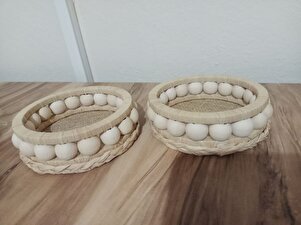 Ahşap Boncuklu Doğal Rafya Mumluk 2 Adet Ahşap Boncuklu Doğal Rafya Mumluk 2 Adet H2DSGN12 تک سایز