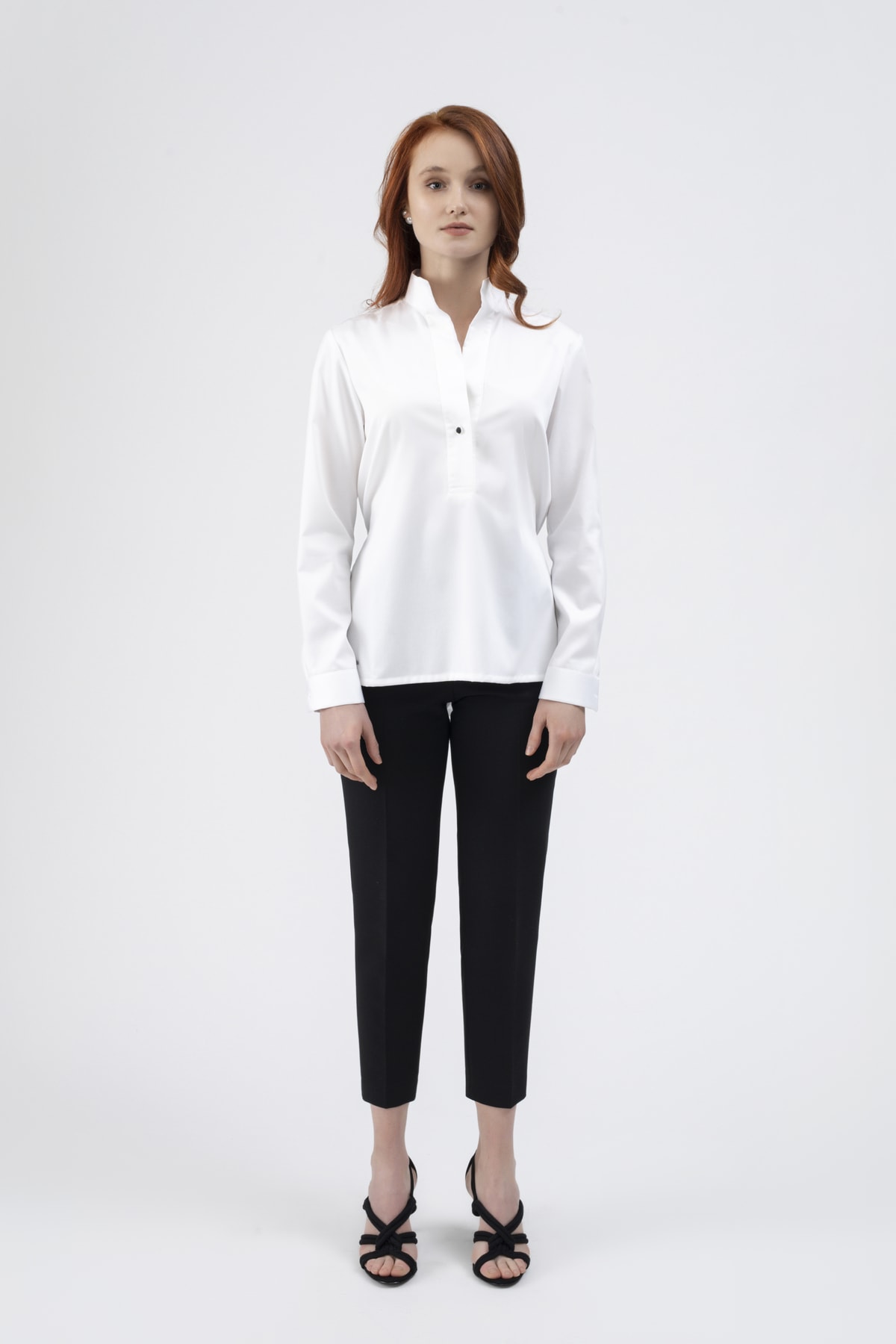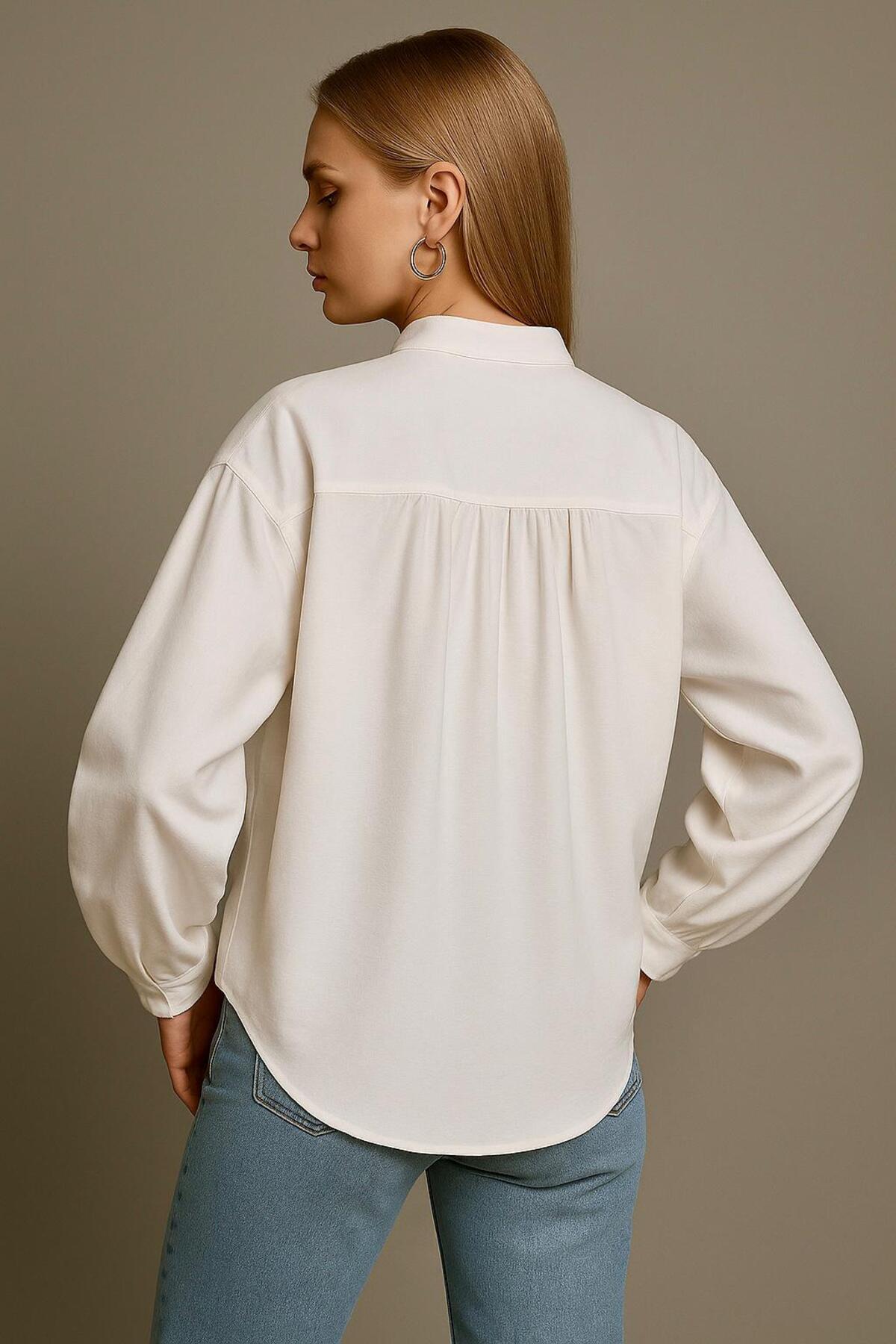 Dökümlü Oversize Hakim Yaka Beyaz Gömlek Dökümlü Oversize Hakim Yaka Beyaz Gömlek 320 XL