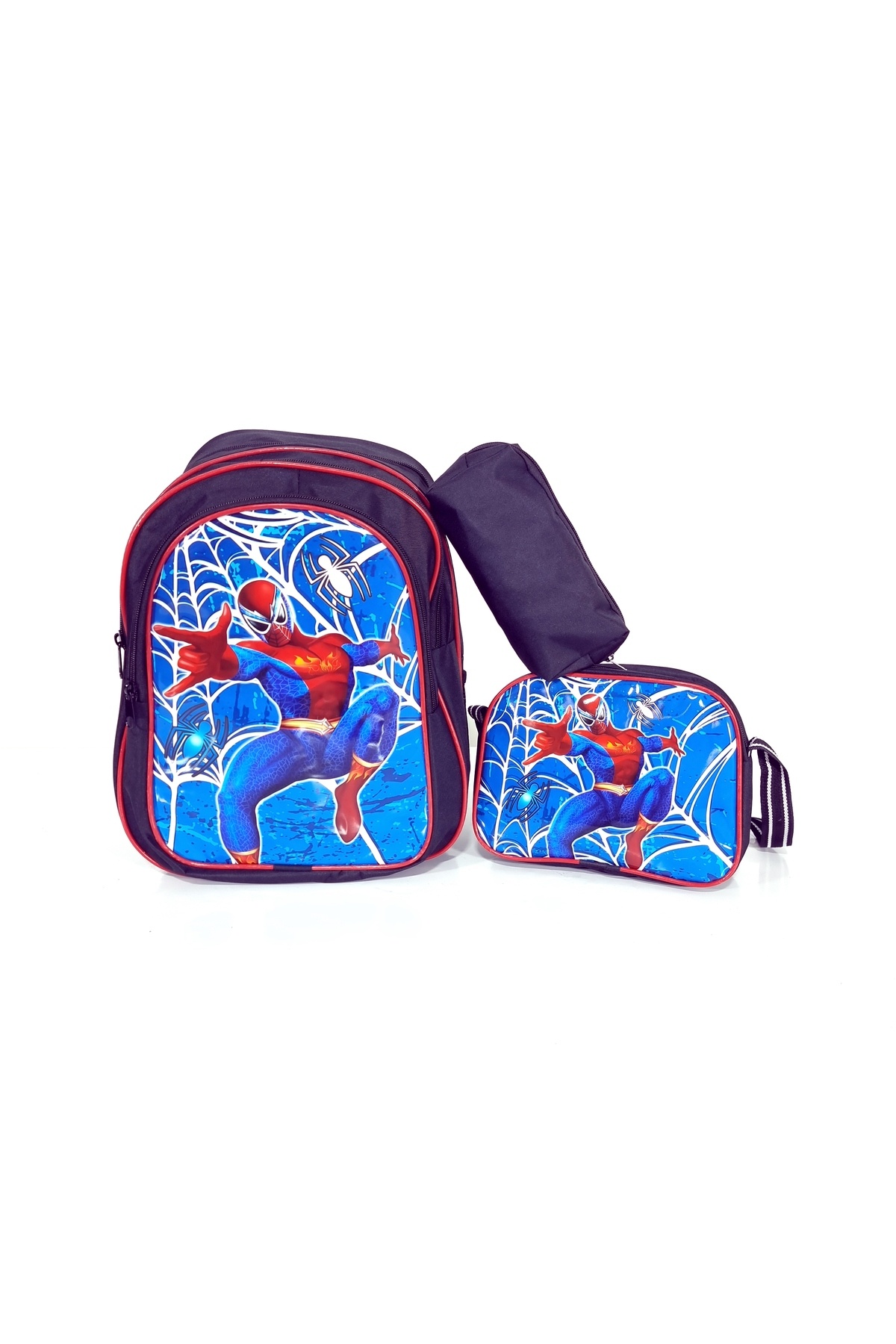 Okul Çantası 3'lü Set Beslenme Çantası Kalemlik Ve Çanta Okul Çantası 3'lü Set Beslenme Çantası Kalemlik Ve Çanta SPEEDY ÖRÜMCEK ADAMLI LACİ KIRMIZI تک سایز