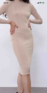 Bej Uzun Kollu Yarım Balıkçı Yaka Midi Boy Triko Elbise Bej Uzun Kollu Yarım Balıkçı Yaka Midi Boy Triko Elbise SWD4506 L