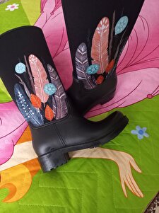 Tüy Desenli Esnek Baldır Seçmez Su Geçirmez Rahat Giyilen Yağmur Çizmesi Tüy Desenli Esnek Baldır Seçmez Su Geçirmez Rahat Giyilen Yağmur Çizmesi 20401 40
