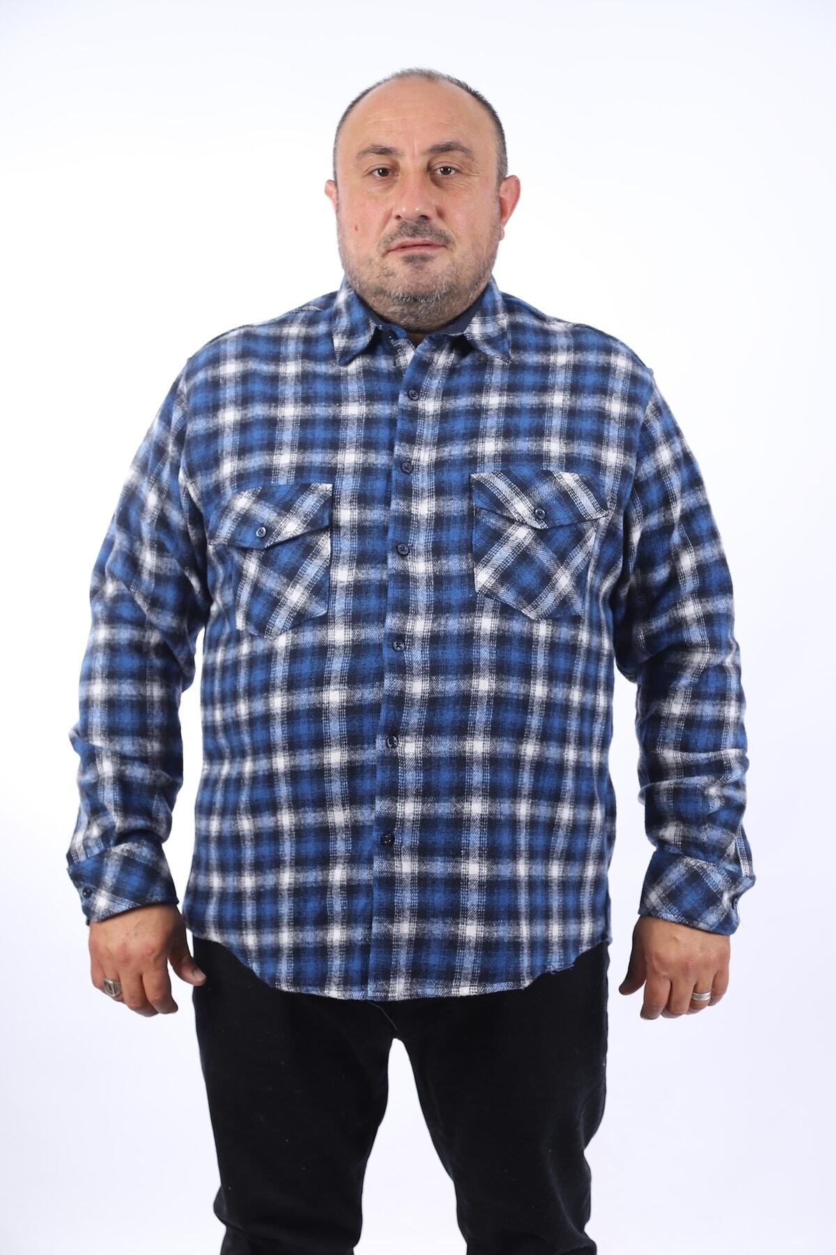 Oduncu Gömlek Çift Cep Kapaklı Small Plaid 22217-petrol Oduncu Gömlek Çift Cep Kapaklı Small Plaid 22217-petrol 8XL