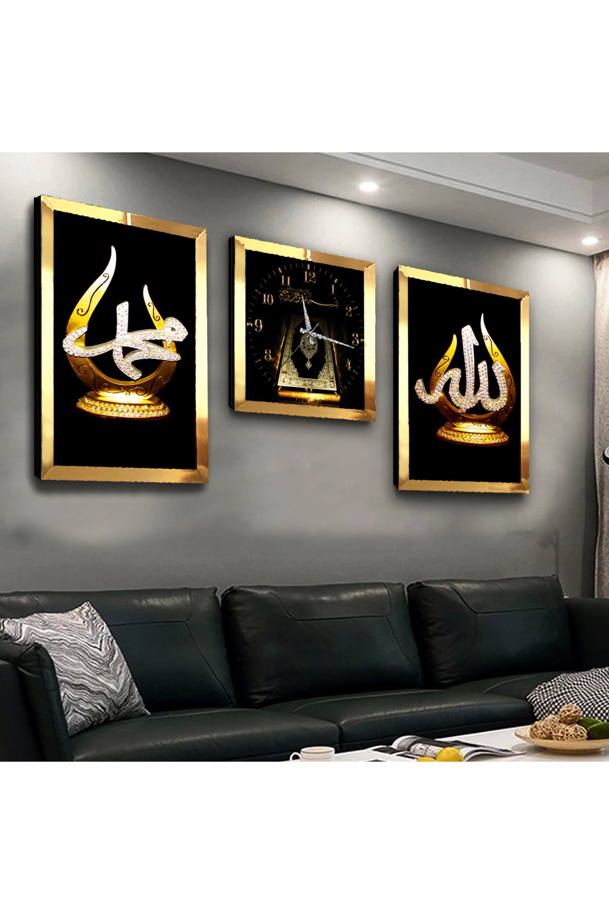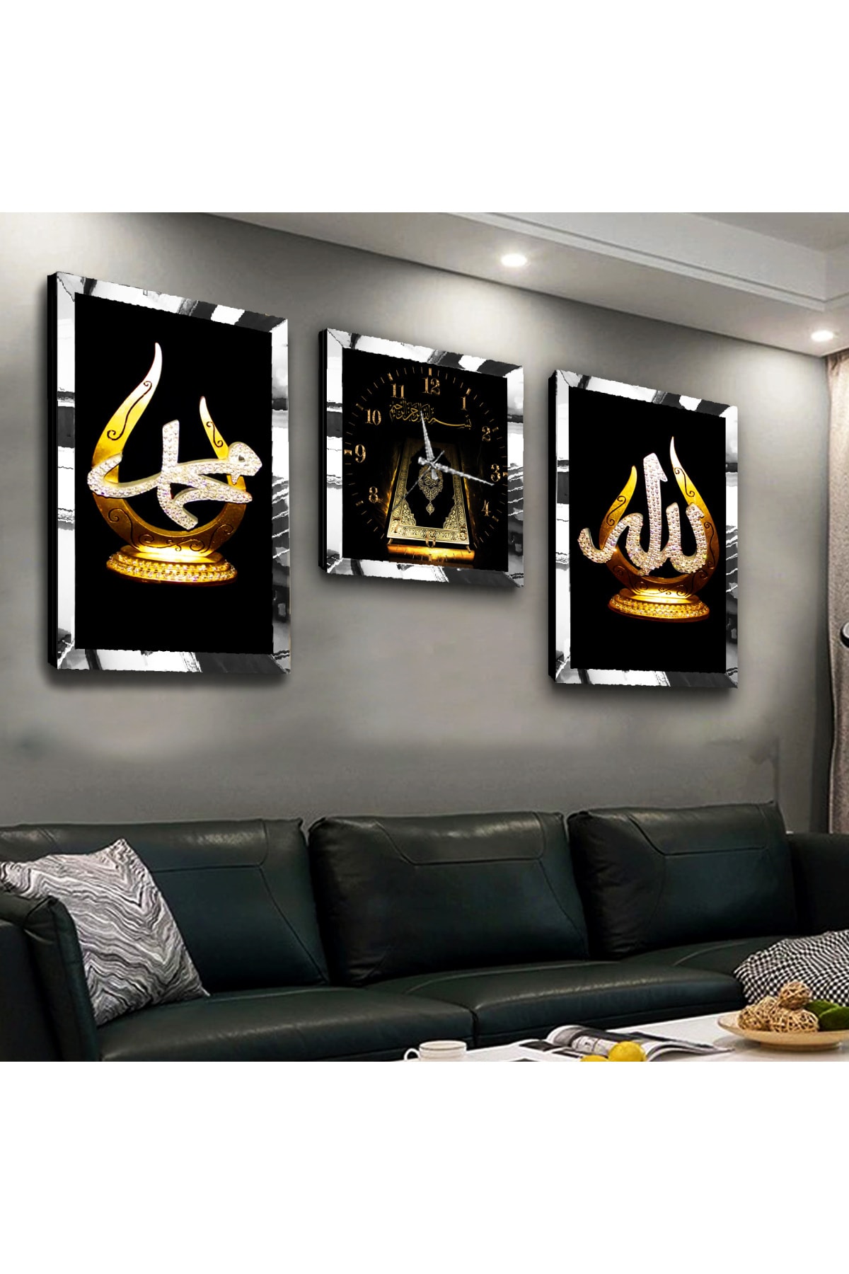 Gümüş Aynalı Pleksi Çerçeveli Hz Muhammed Ve Allah Lafzı Dini Aynalı Üçlü Mdf Tablo Ve Saat Seti Gümüş Aynalı Pleksi Çerçeveli Hz Muhammed Ve Allah Lafzı Dini Aynalı Üçlü Mdf Tablo Ve Saat Seti 3MPTMSGP185 40 x 60