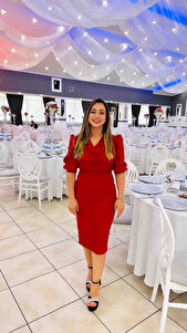 Krep Kumaş Degaje Yaka Kalem Elbise - Kırmızı Krep Kumaş Degaje Yaka Kalem Elbise - Kırmızı GYM-0913 50