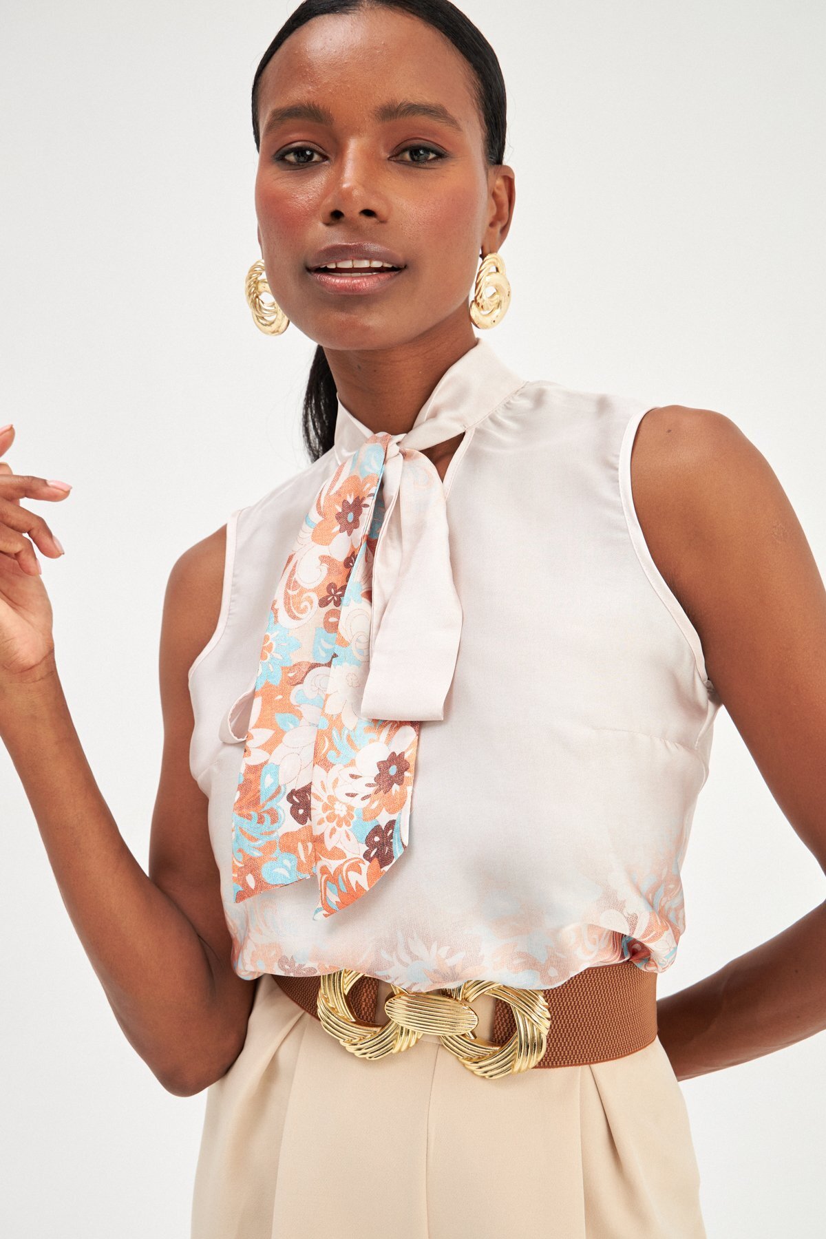 Desenli Fular Detaylı Bluz - Turuncu Desenli Fular Detaylı Bluz - Turuncu STN139KBL1082 42
