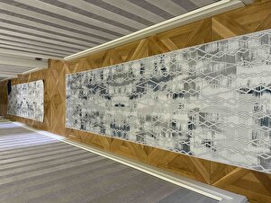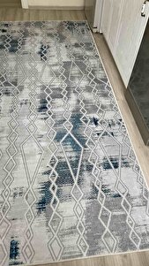 Modern Desenli Beyaz Gri Mavi Yıkanabilir Kaymaz Taban Kadife Yolluk Koridor Halısı 7018 Modern Desenli Beyaz Gri Mavi Yıkanabilir Kaymaz Taban Kadife Yolluk Koridor Halısı 7018 160 x 230