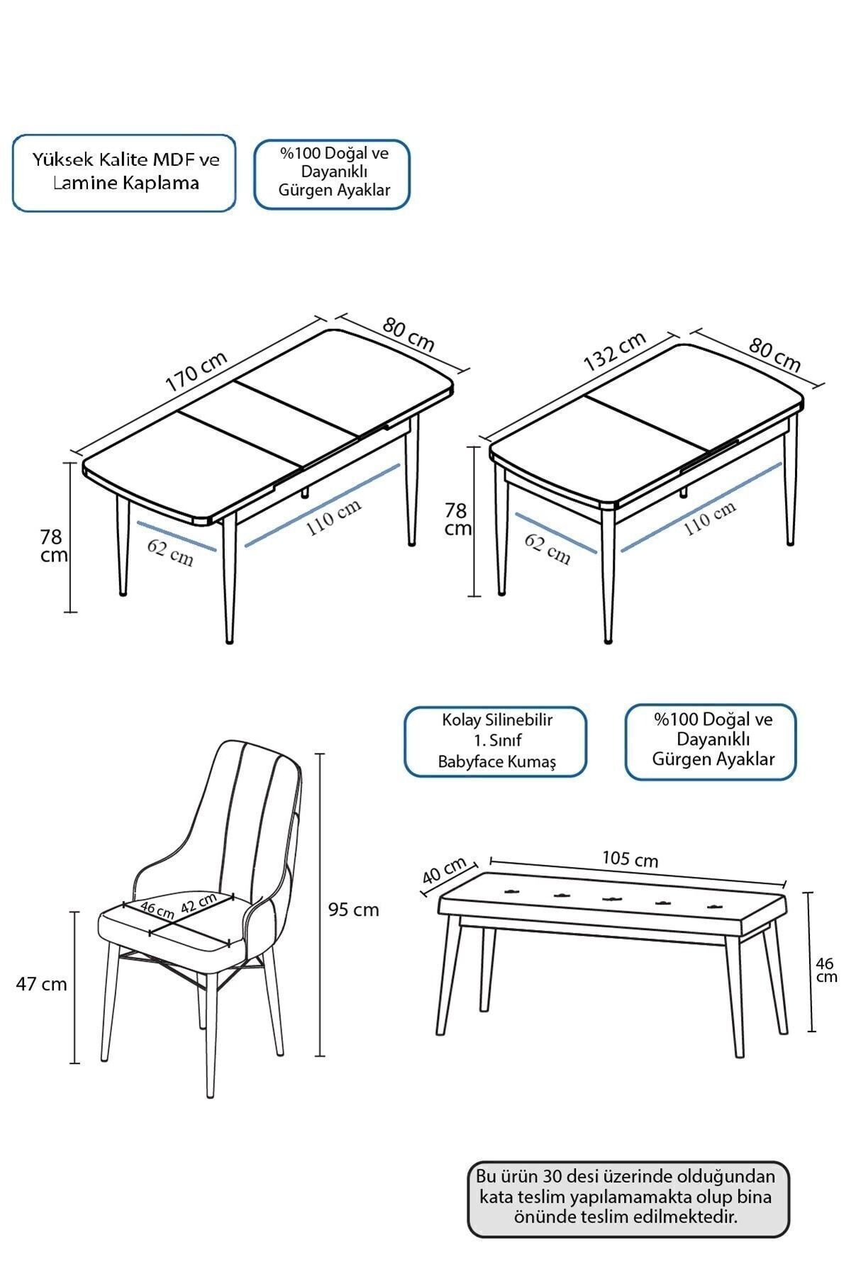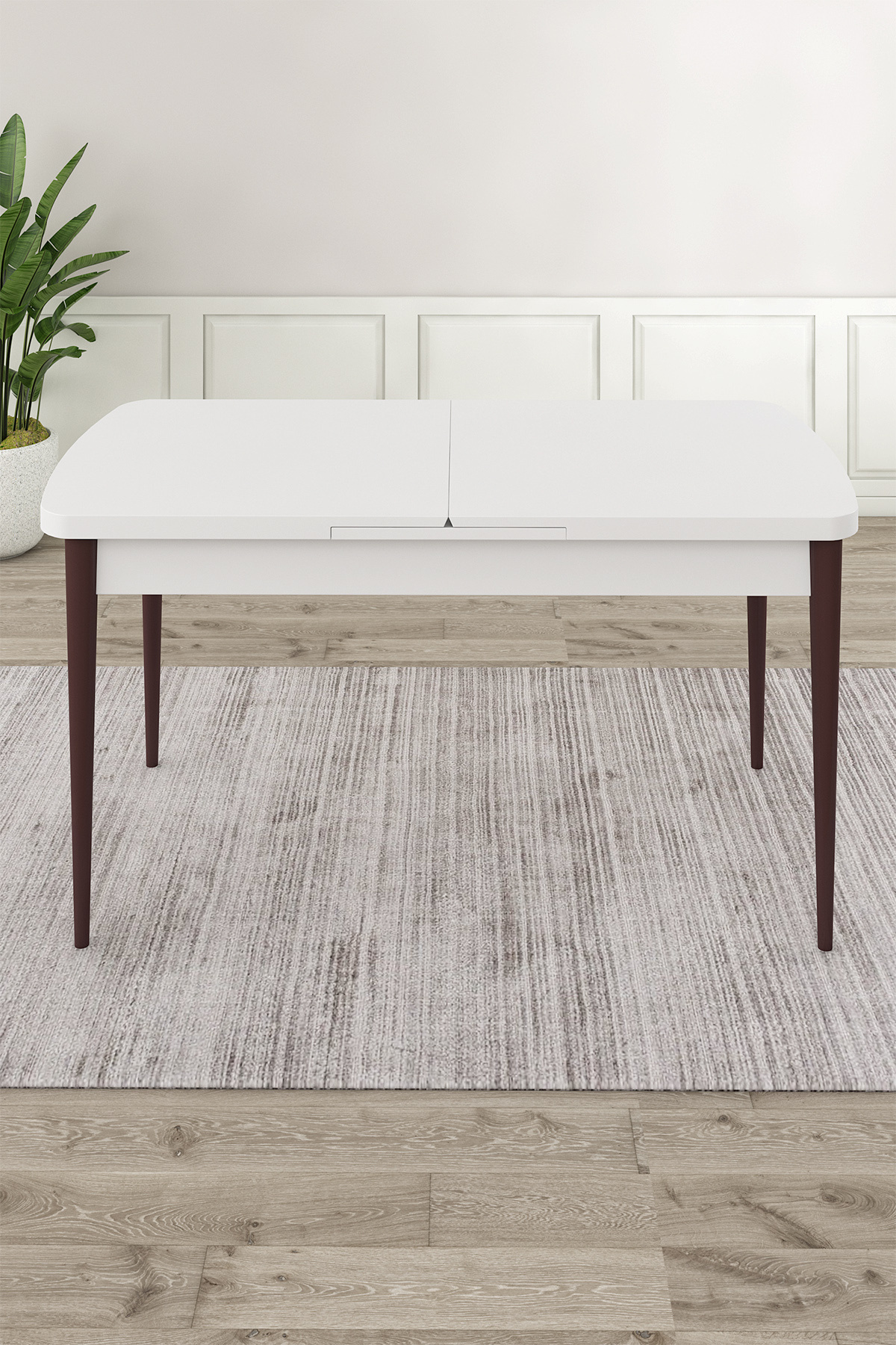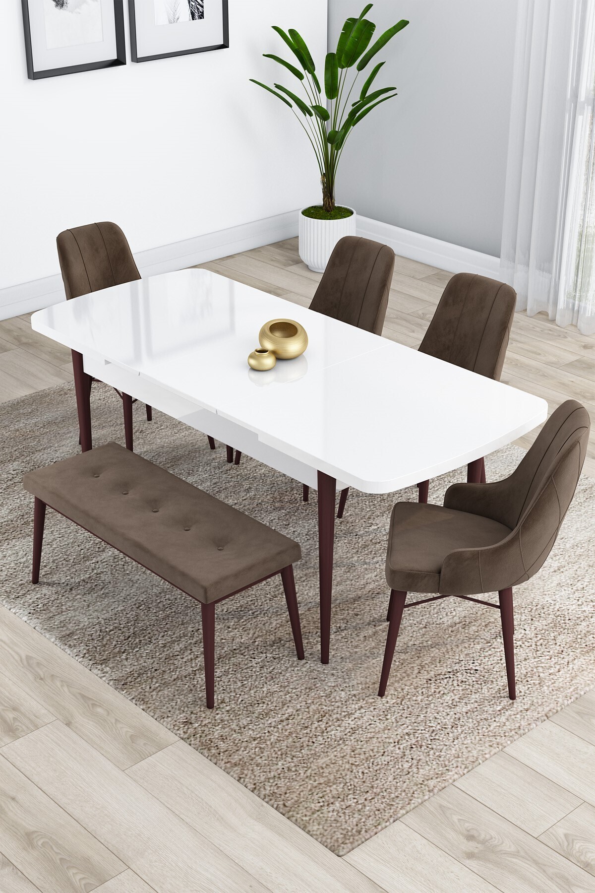 Kar Serisi 80x132 Açılabilir Mdf Ceviz Ayaklı Beyaz Mutfak Masası Takımı 4 Kahve Sandalye 1 Bench Kar Serisi 80x132 Açılabilir Mdf Ceviz Ayaklı Beyaz Mutfak Masası Takımı 4 Kahve Sandalye 1 Bench 22KAR01BYZ04BNC تک سایز
