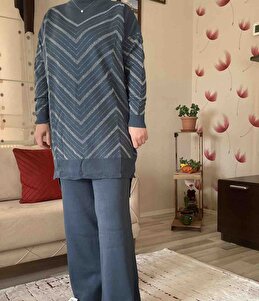 Simli Triko Tunik Pantolon Takım - Indigo Simli Triko Tunik Pantolon Takım - Indigo MQ2320 تک سایز