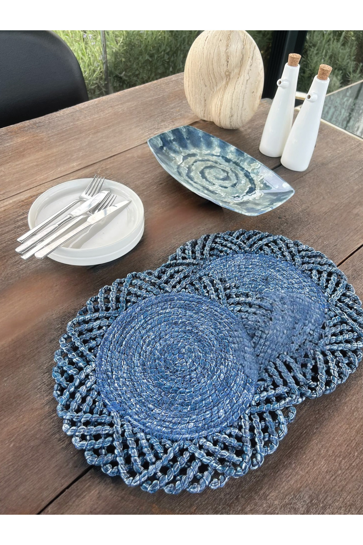 Volonte Saks Mavi Jüt Amerikan Servis 6'lı Örme Hasır Supla Volonte Saks Mavi Jüt Amerikan Servis 6'lı Örme Hasır Supla KJS103