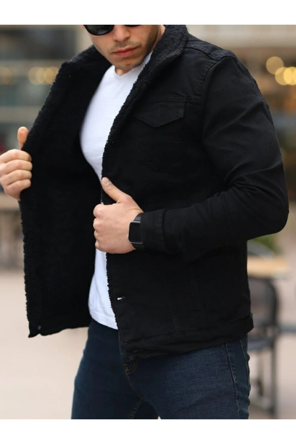 Erkek Siyah Içi Kürklü Dar Kalıp Kot Ceket & Mont Erkek Siyah Içi Kürklü Dar Kalıp Kot Ceket & Mont KürklüKot03 2XL