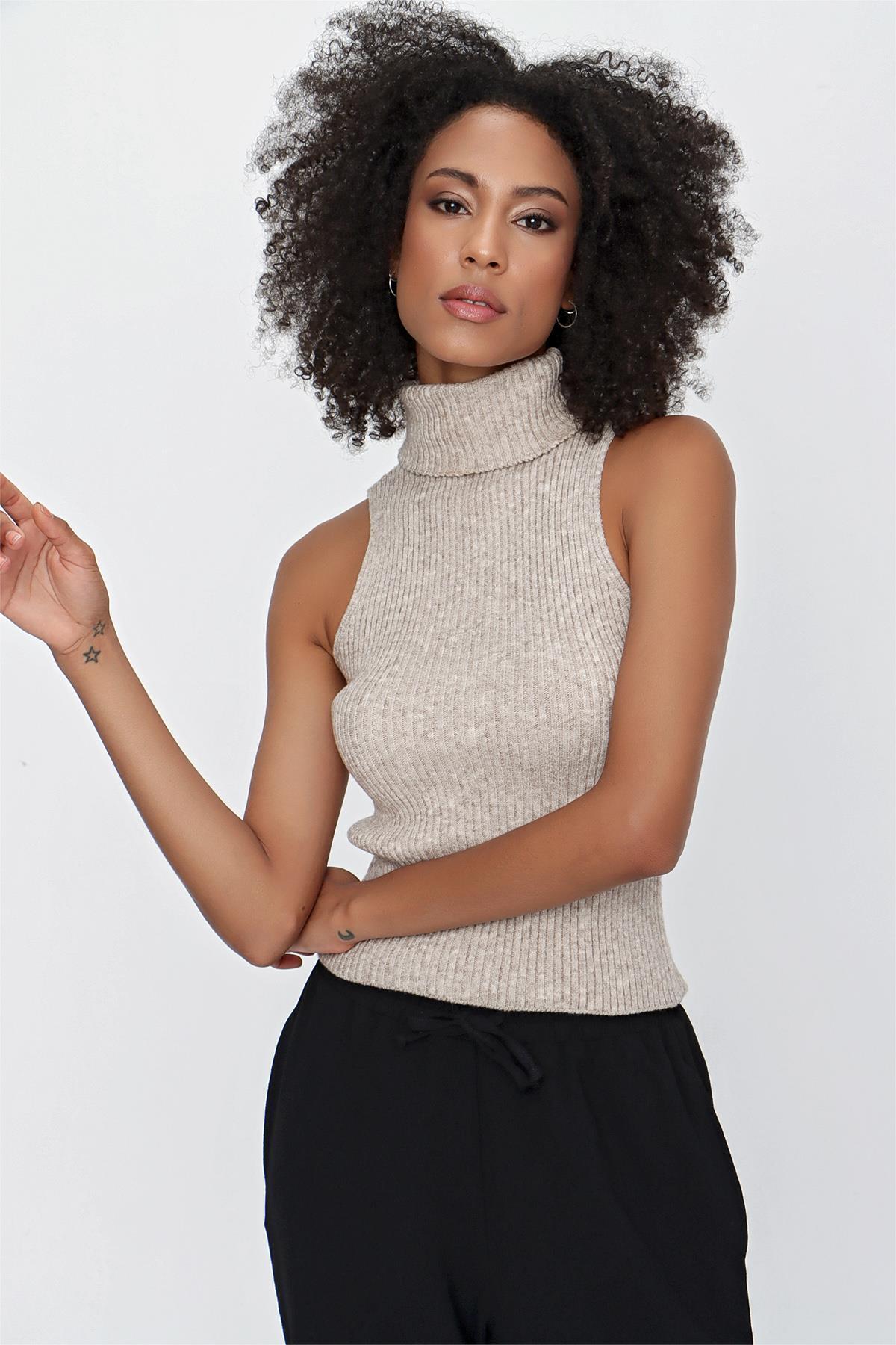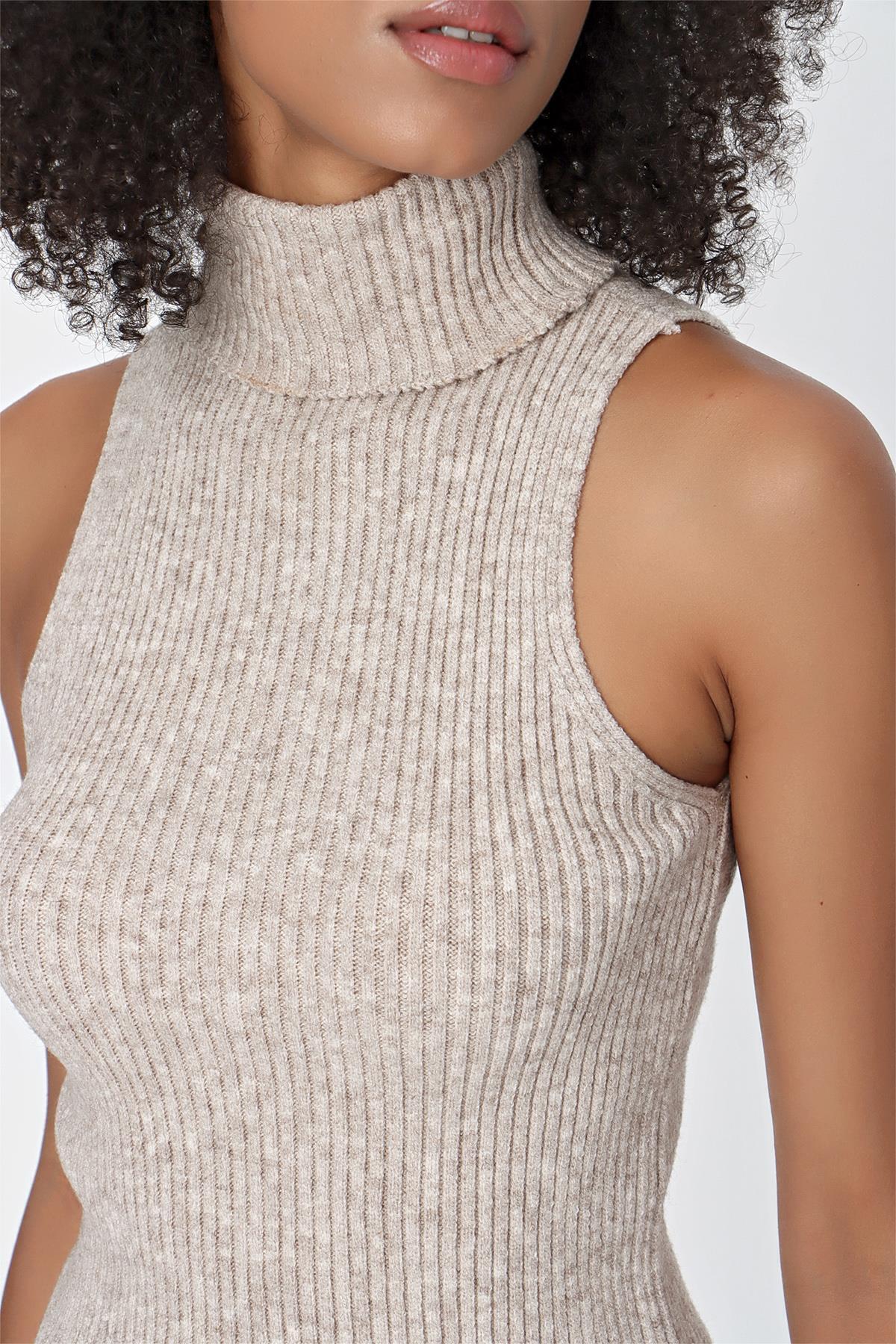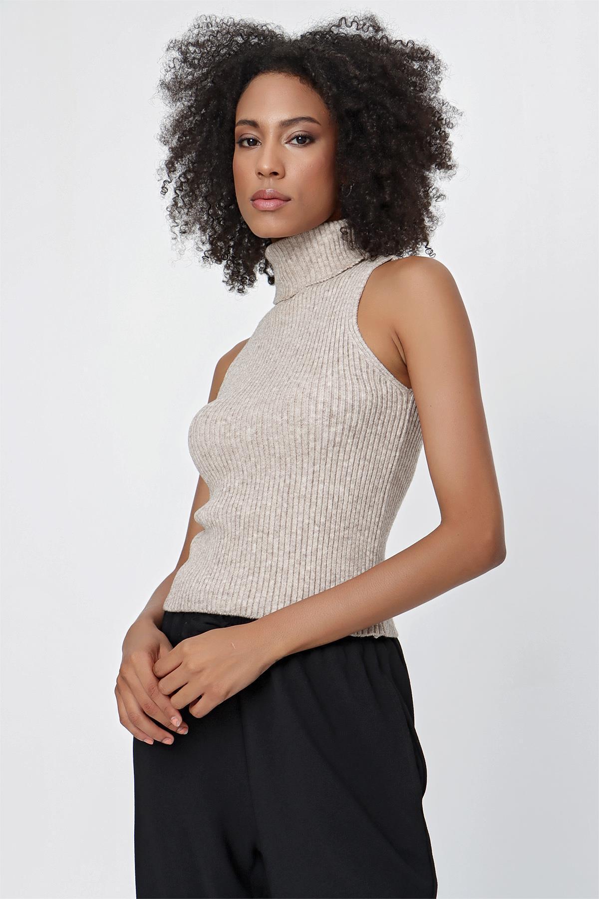 Kadın Balıkçı Yaka Fitilli Kolsuz Melanj Triko Kazak Vizon 23w315 Kadın Balıkçı Yaka Fitilli Kolsuz Melanj Triko Kazak Vizon 23w315 23W315 L