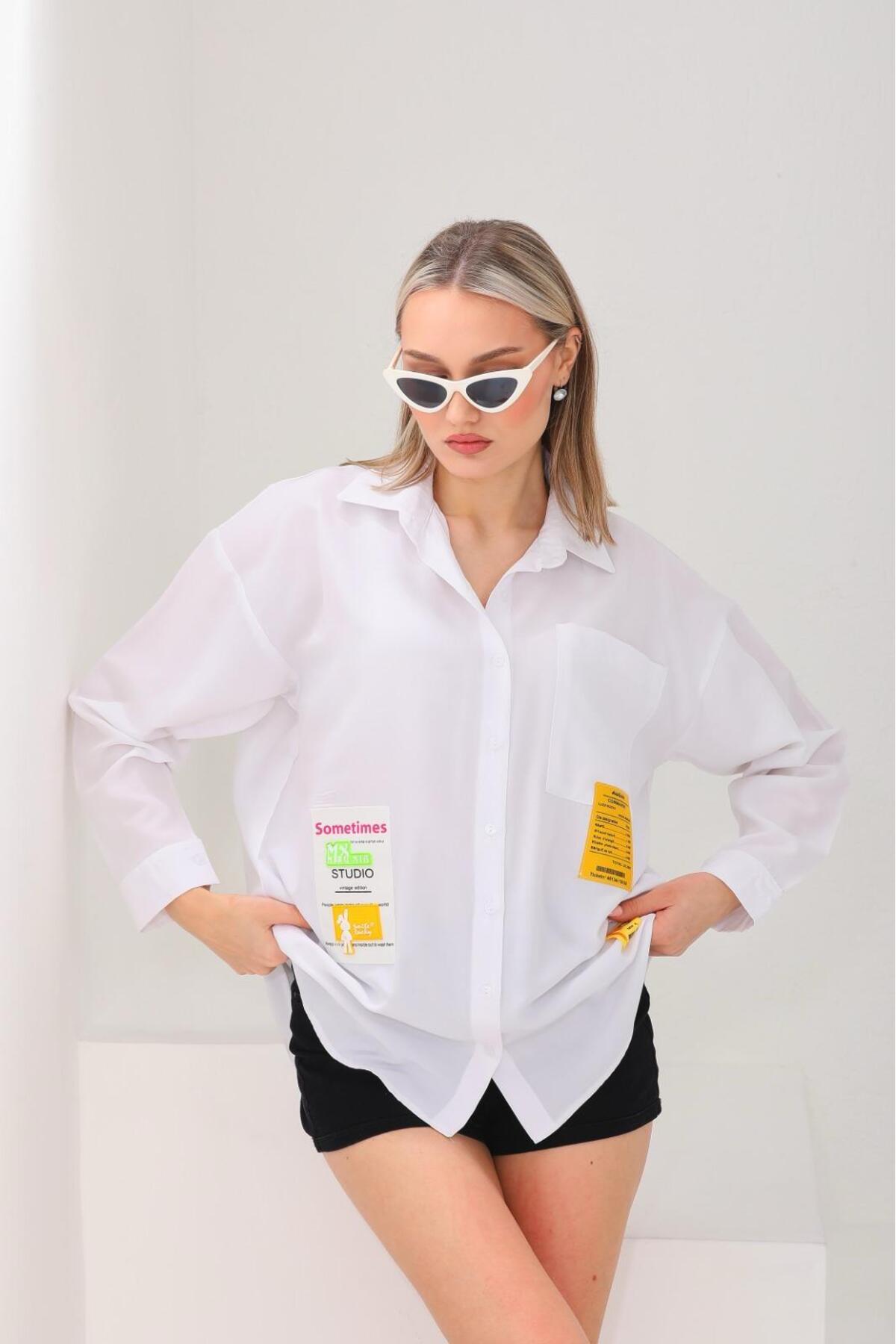 Siyah Yazılı Beyaz Renk Hakim Yaka Mektup Desenli Mosskrep Kumaş Gömlek Siyah Yazılı Beyaz Renk Hakim Yaka Mektup Desenli Mosskrep Kumaş Gömlek 9079 2XL
