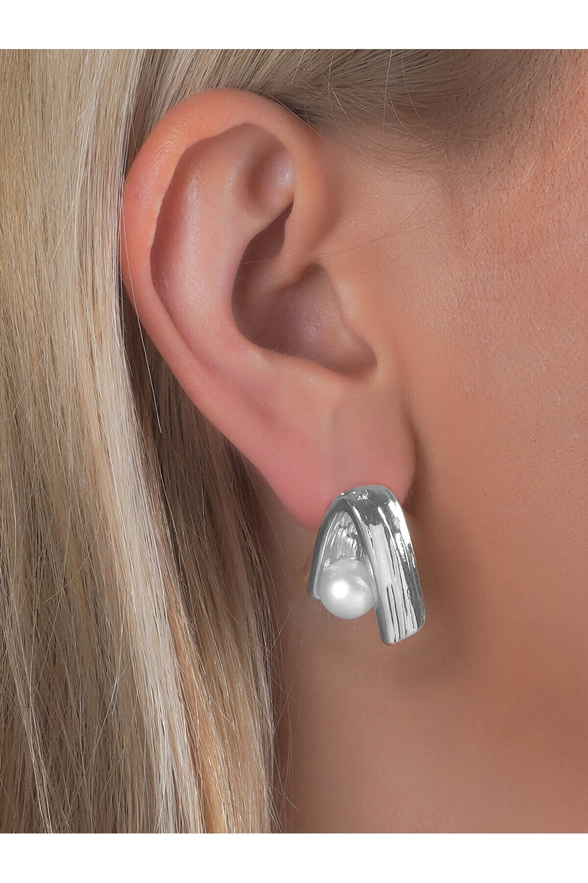 Büyük Incili Tasarım Gümüş Renk Küpe Büyük Incili Tasarım Gümüş Renk Küpe DA10172 تک سایز