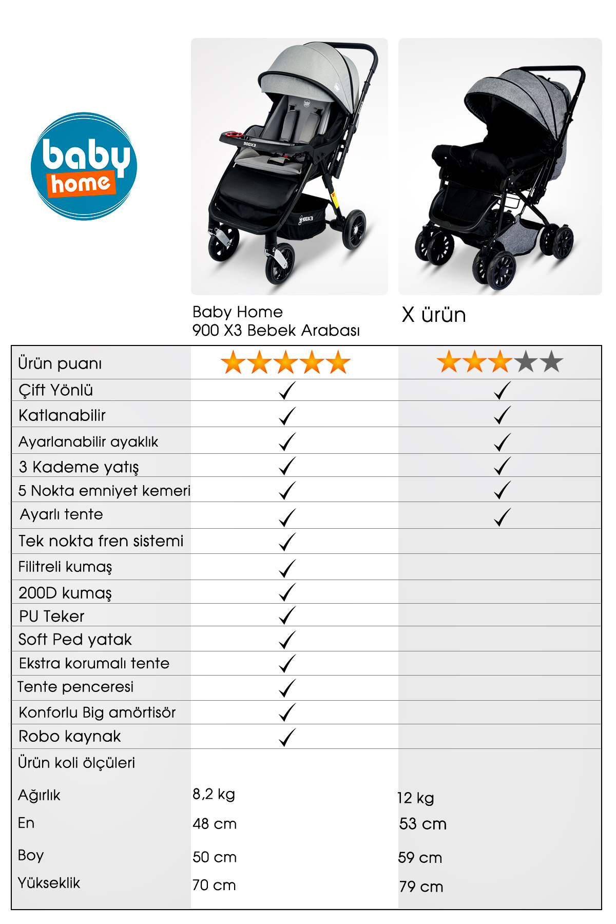 900 X3 Çift Yönlü Bebek Arabası 900 X3 Çift Yönlü Bebek Arabası BABYHOME_X3 تک سایز