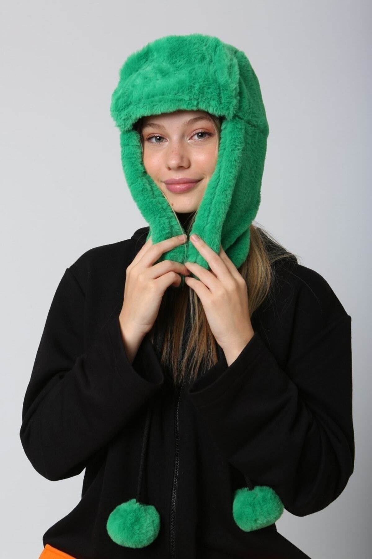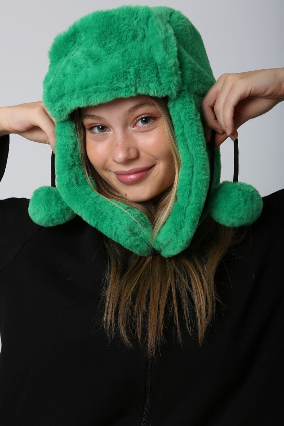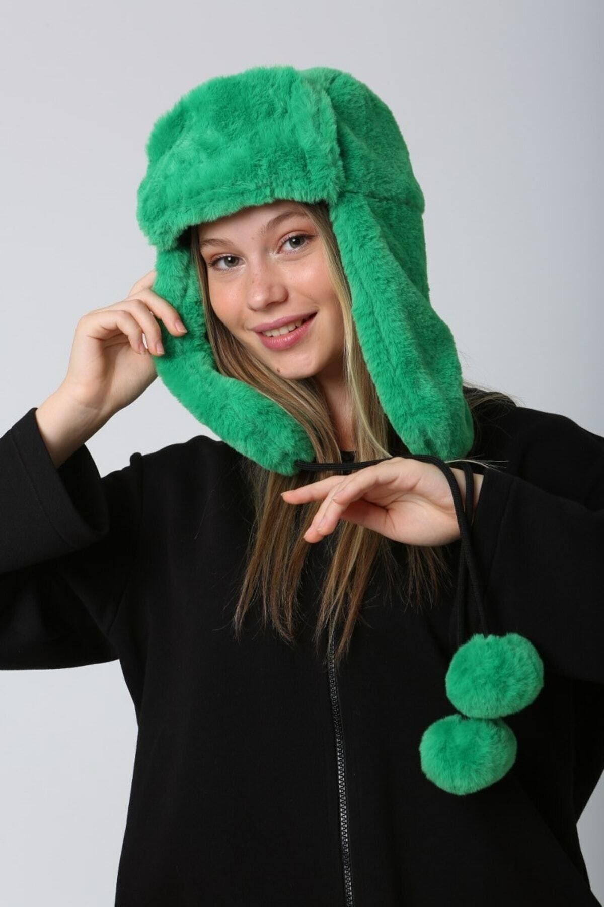 Kadın Yeşil Ponponlu Kürklü Kulaklıklı Peluş Şapka Bere Bere1103 Kadın Yeşil Ponponlu Kürklü Kulaklıklı Peluş Şapka Bere Bere1103 BERE1103 Standart